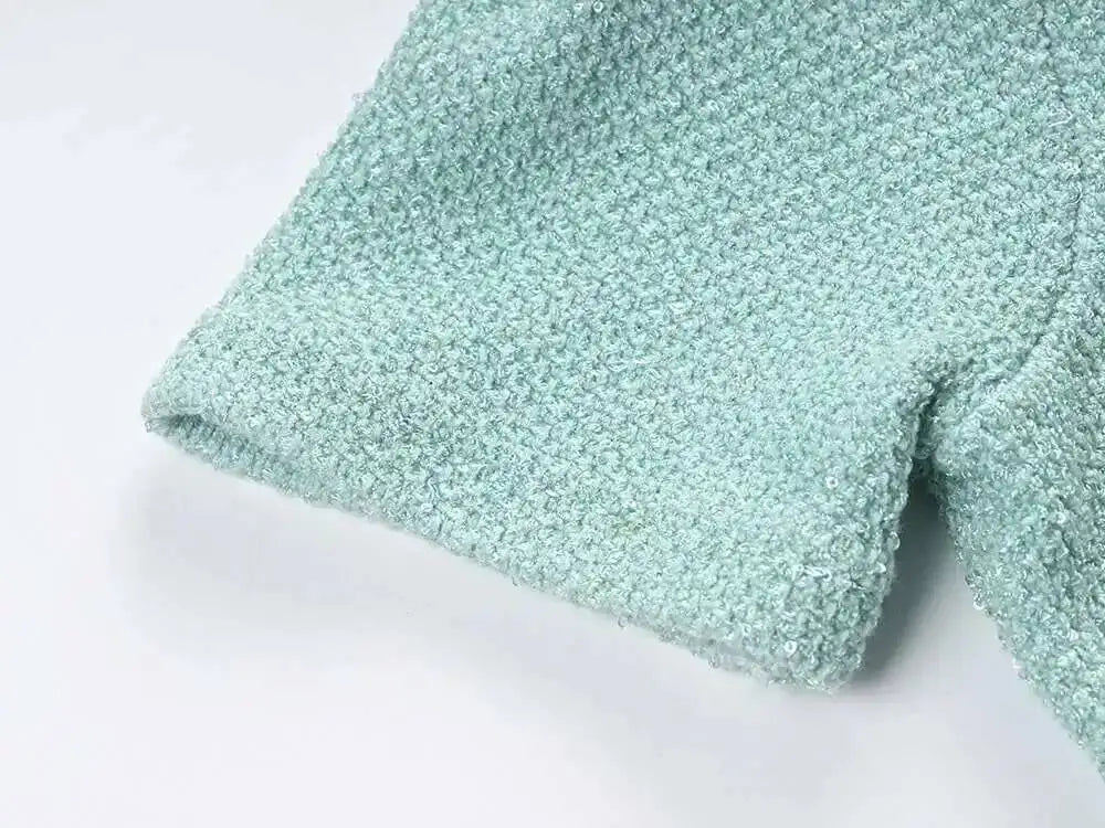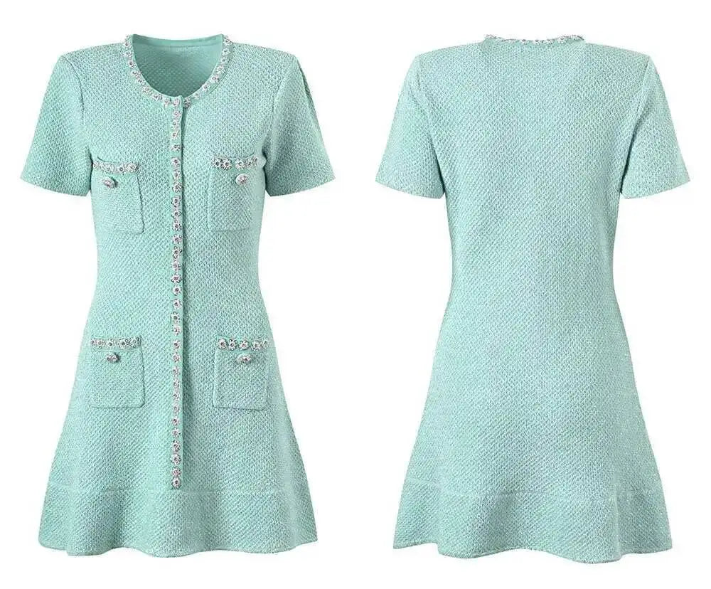 Luxury Designer Summer Autumn Diamond Sequin Knitted Dress For Women Ruffle Edge Beading Short Evening Party Dresses Green