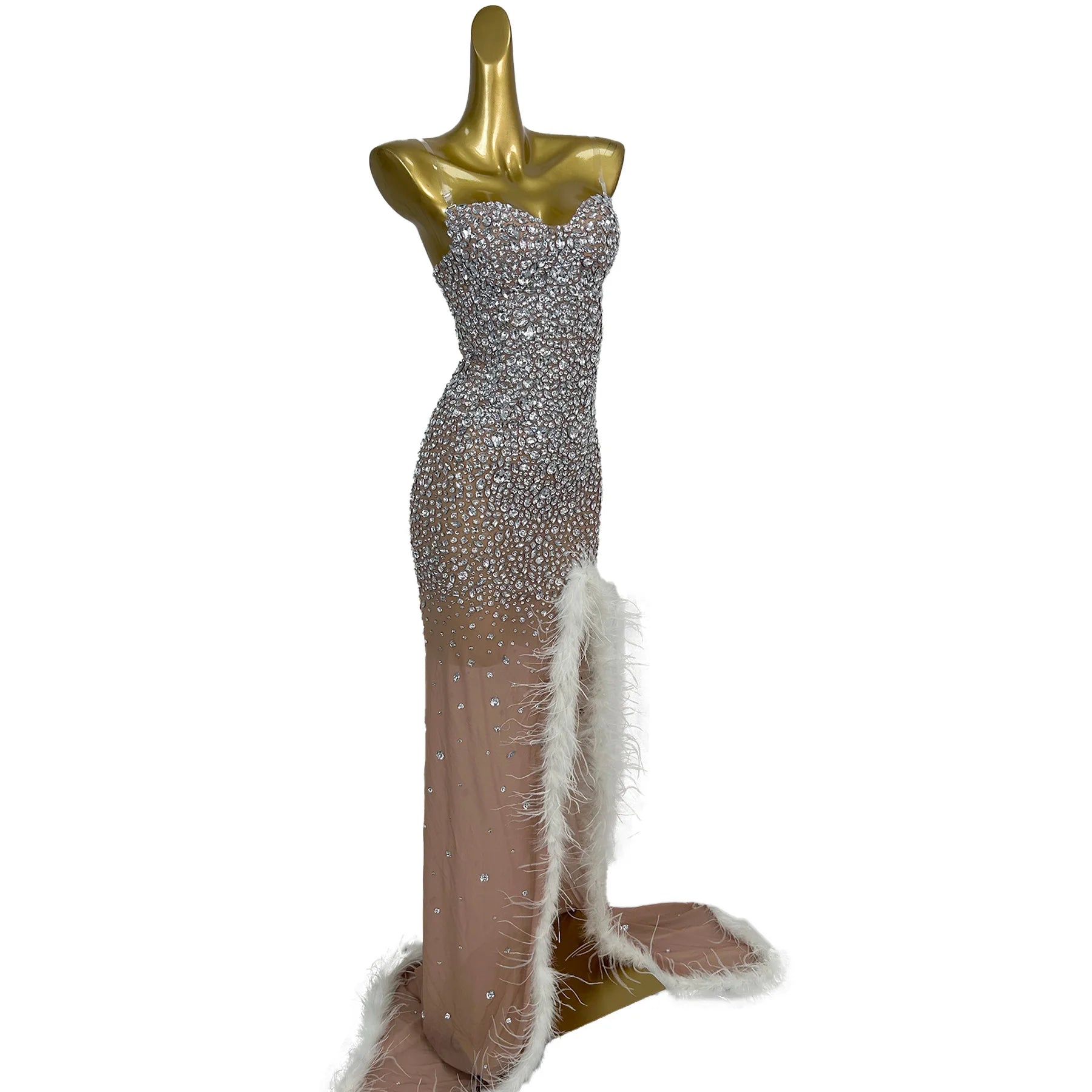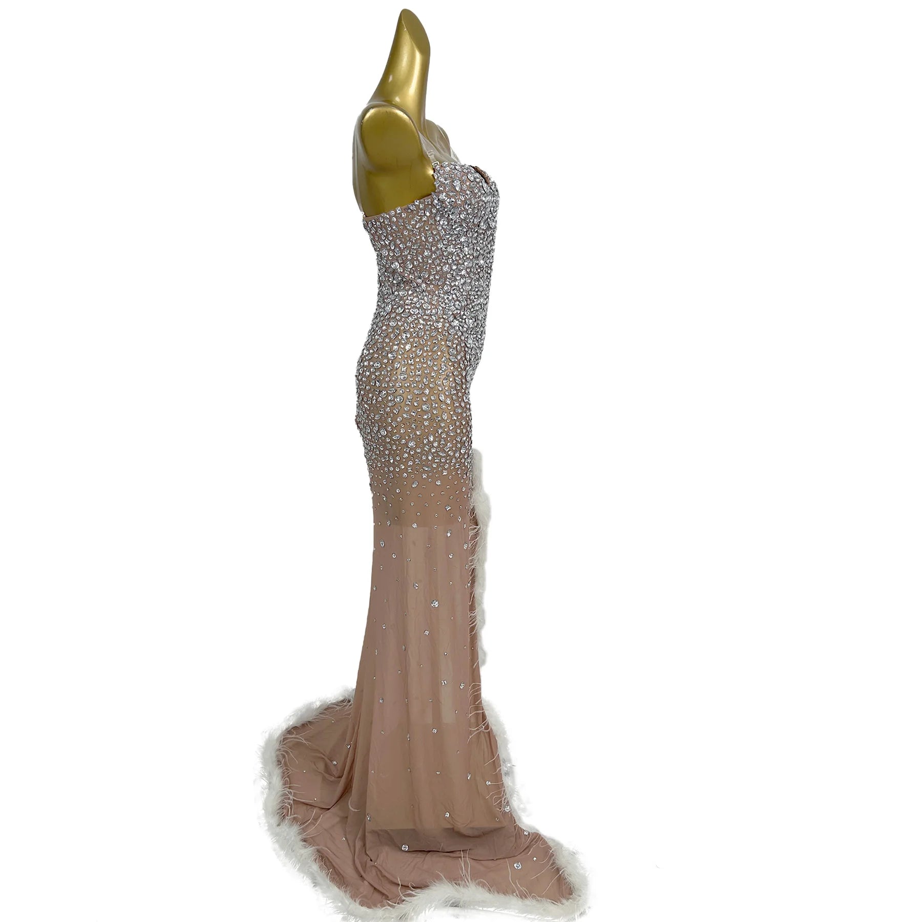 Luxury Elegant High Side Slits Evening Gown Night Party Birthday Prom Photo Shoot High-end Strapless Dresses With Gloves