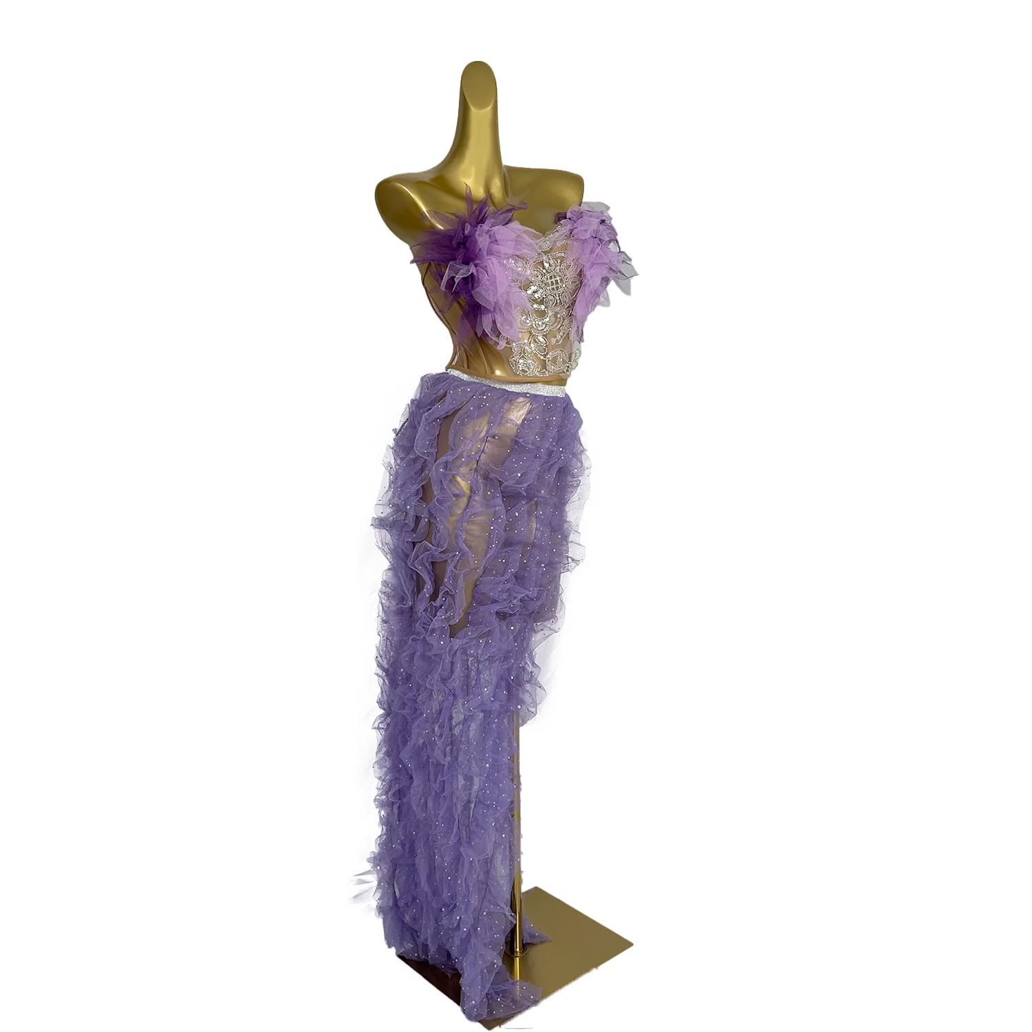 Luxury Evening Dress Set Sweetheart Sleeveless Sparkling Beading Applique Slit Cocktail Party Gown Illusion Prom Dresses Ruhua