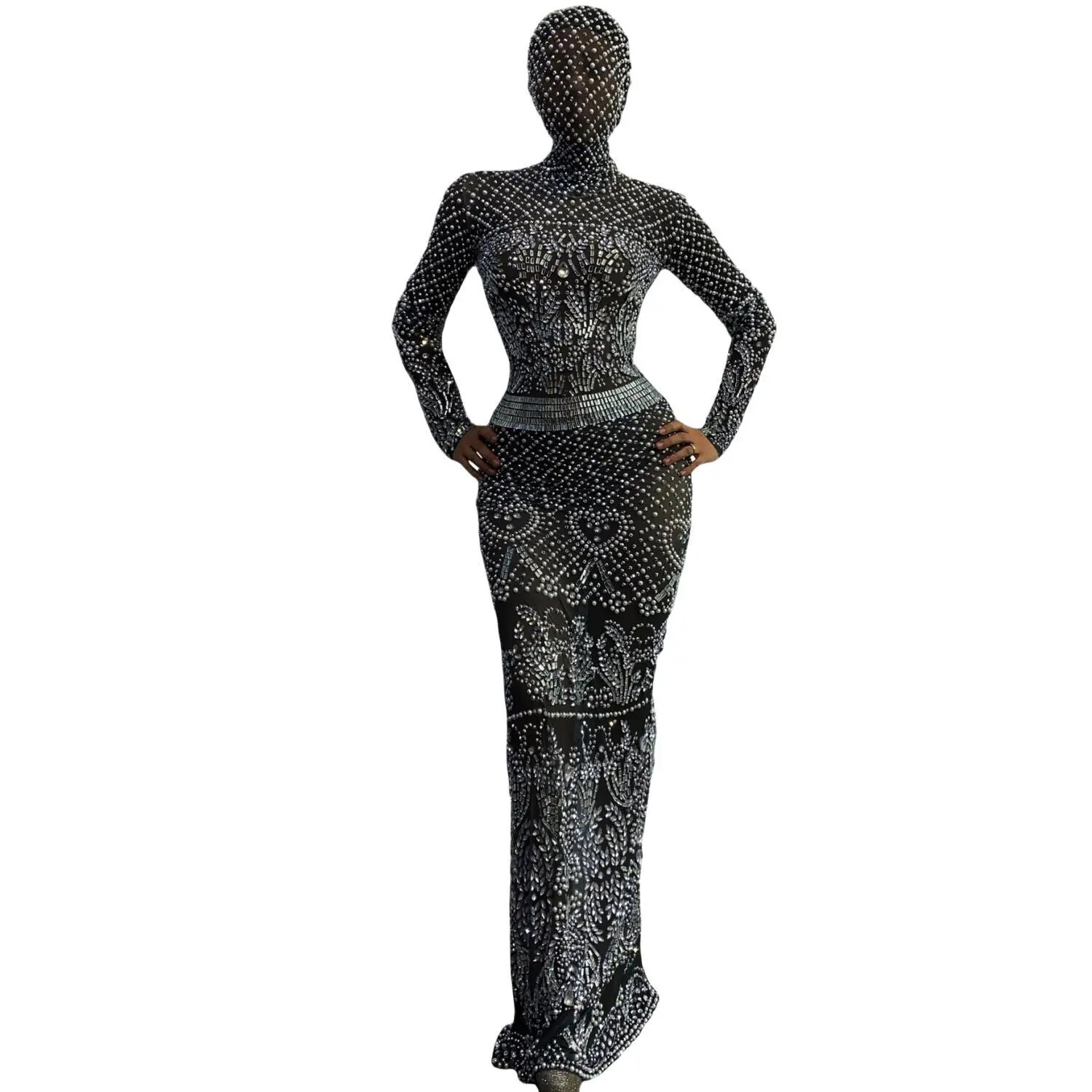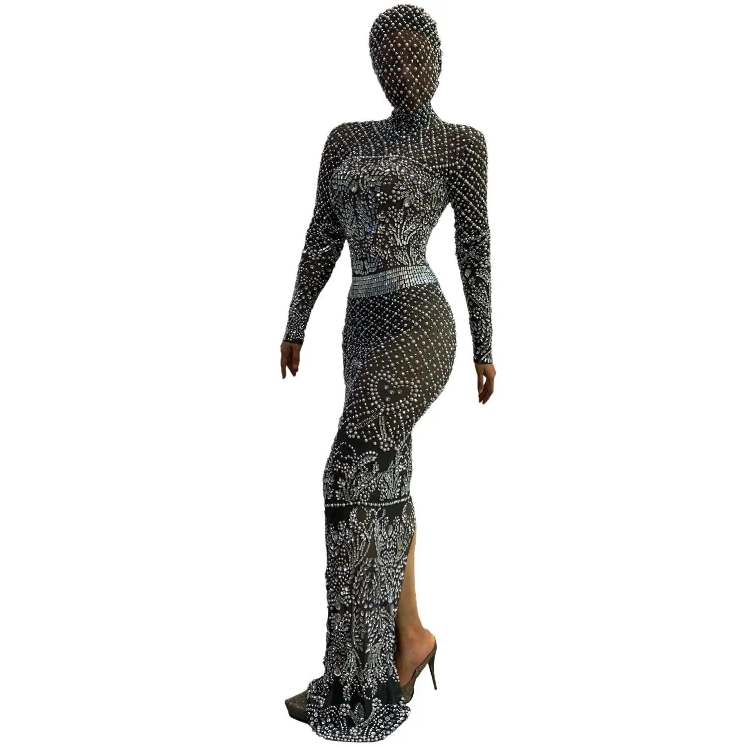 Luxury Fashion Long Prom Dresses 2023 Sparkly Mermaid Style Silver Crystals Girls Prom Party Gowns with Headwear Zhubo
