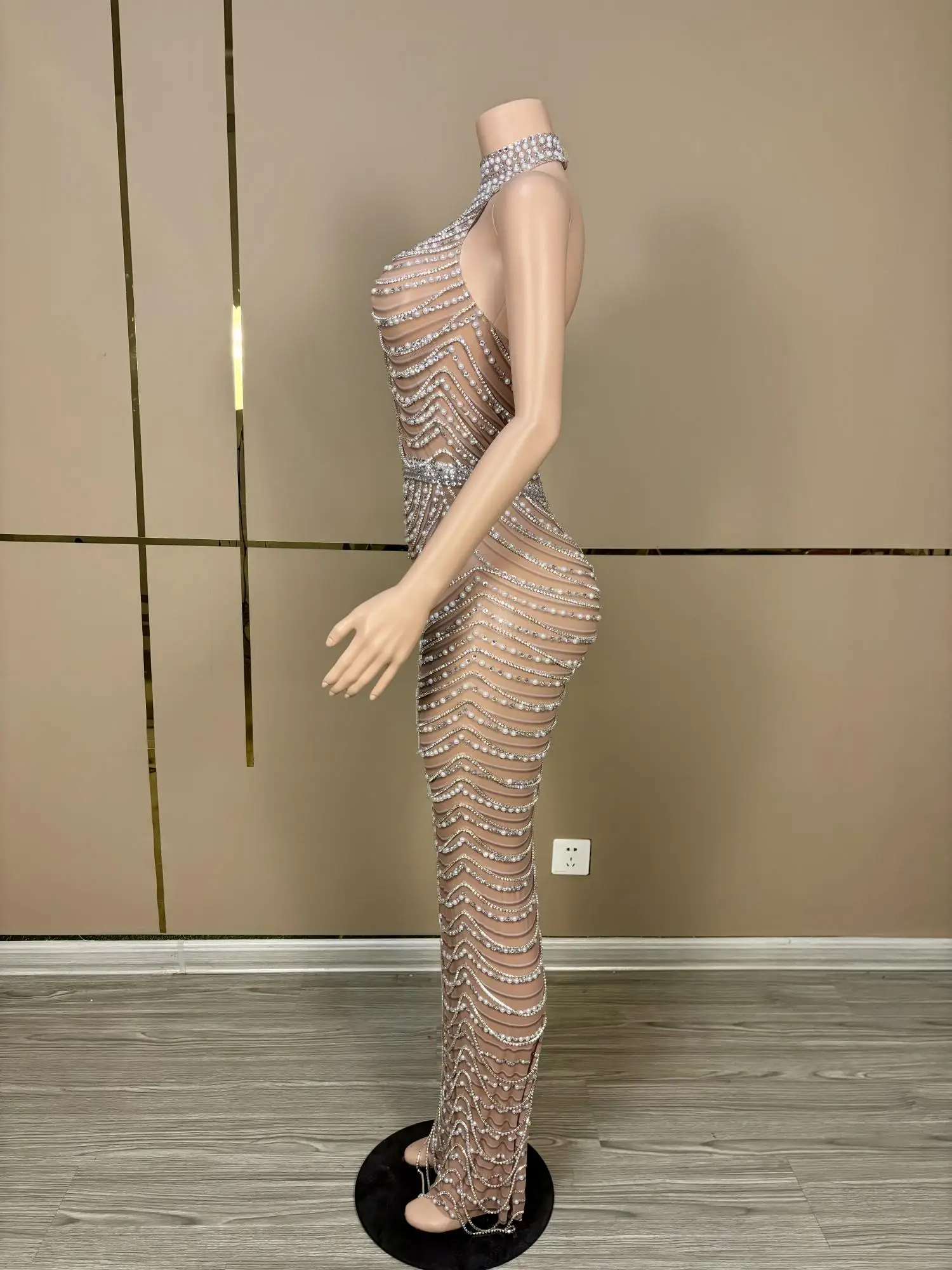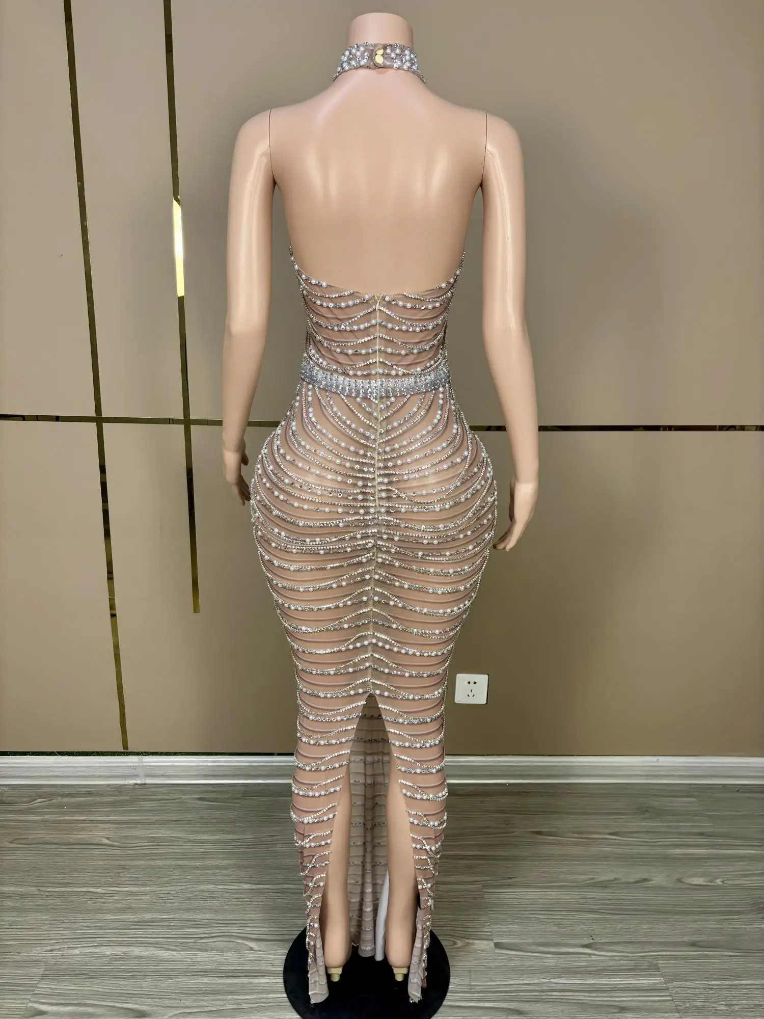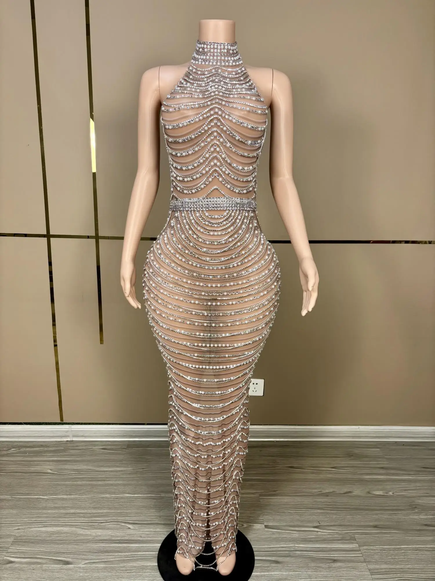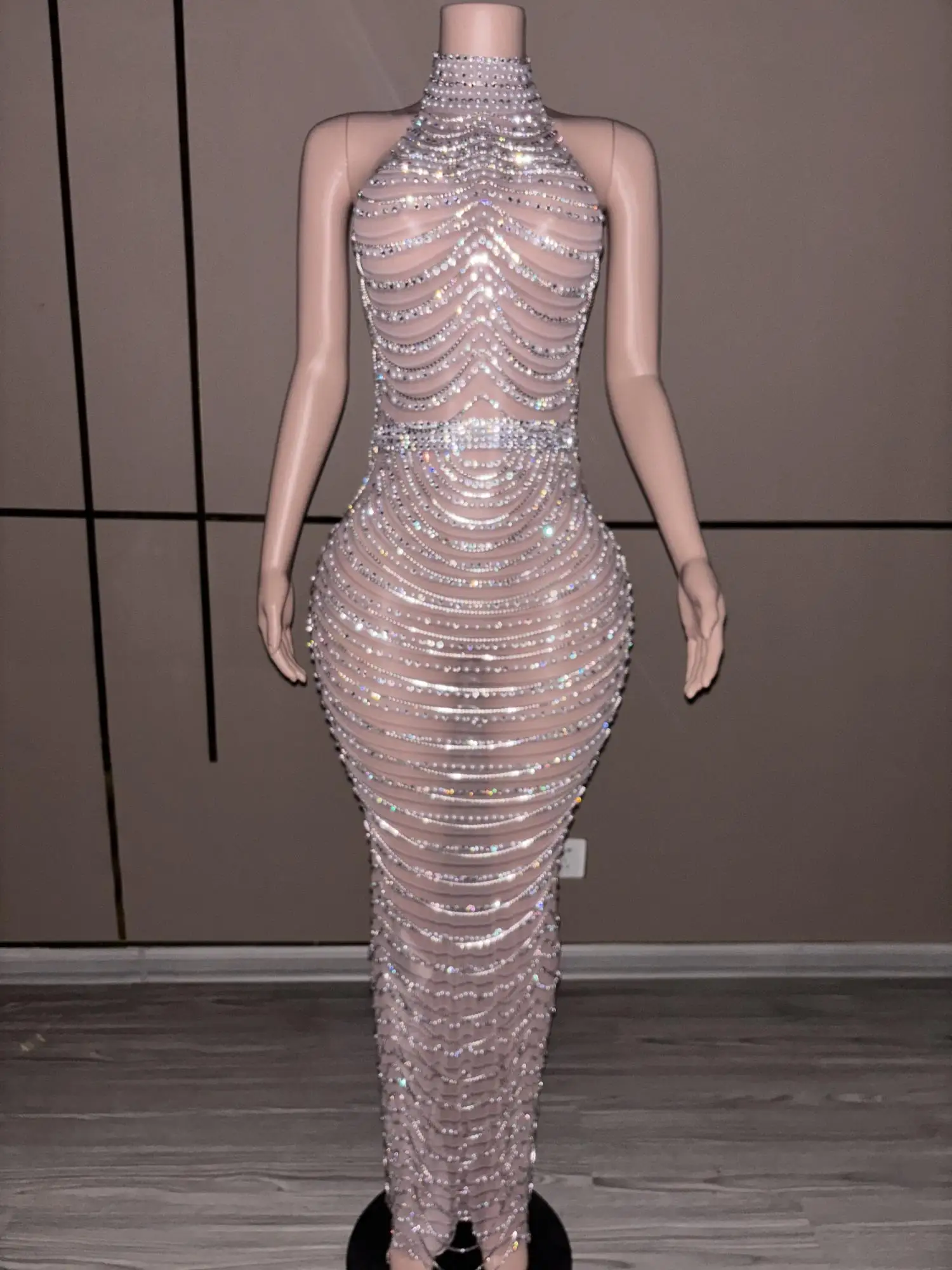 Luxury Fashion See Through Heavy Crystals Birthday Gowns Sparkly Silver Long Black Girl Backless Prom Dresses 2024 Paowuxian