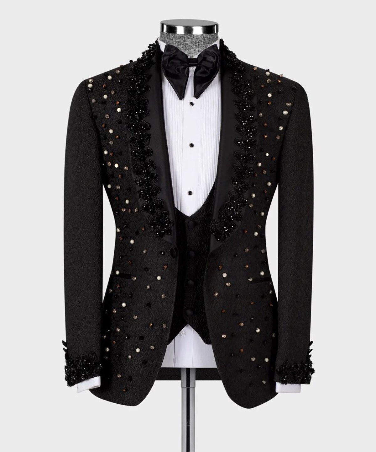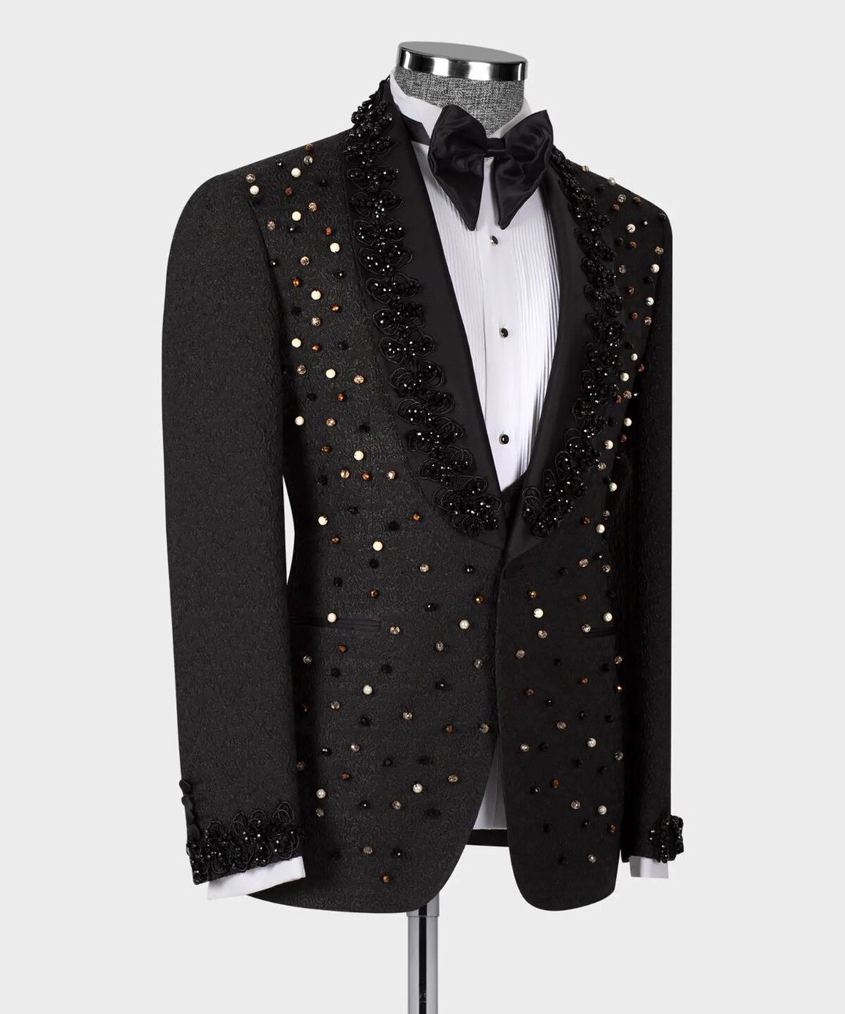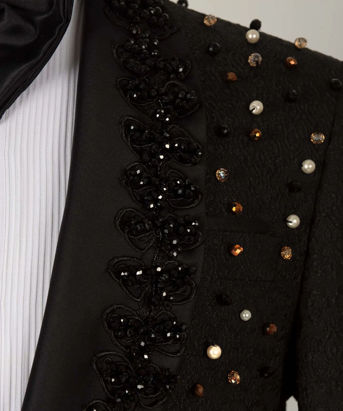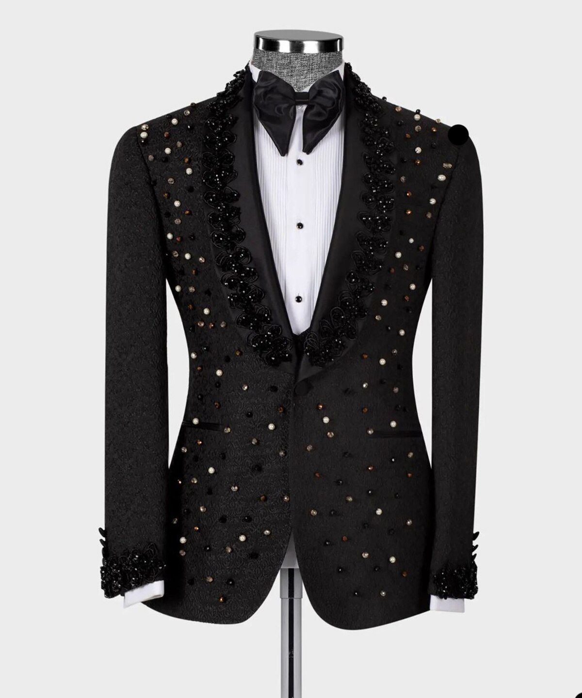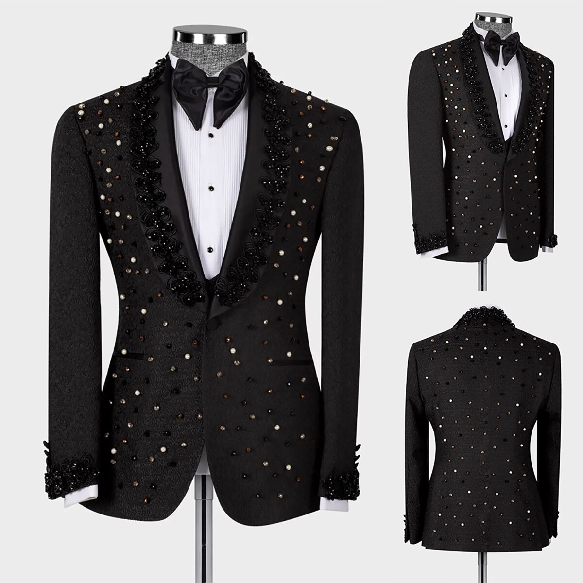 Men Suit Tailor-Made One Piece Blue Blazer Tuxedo One Button Jacket Appliques Beaded Slim Fit Wedding Groom Prom