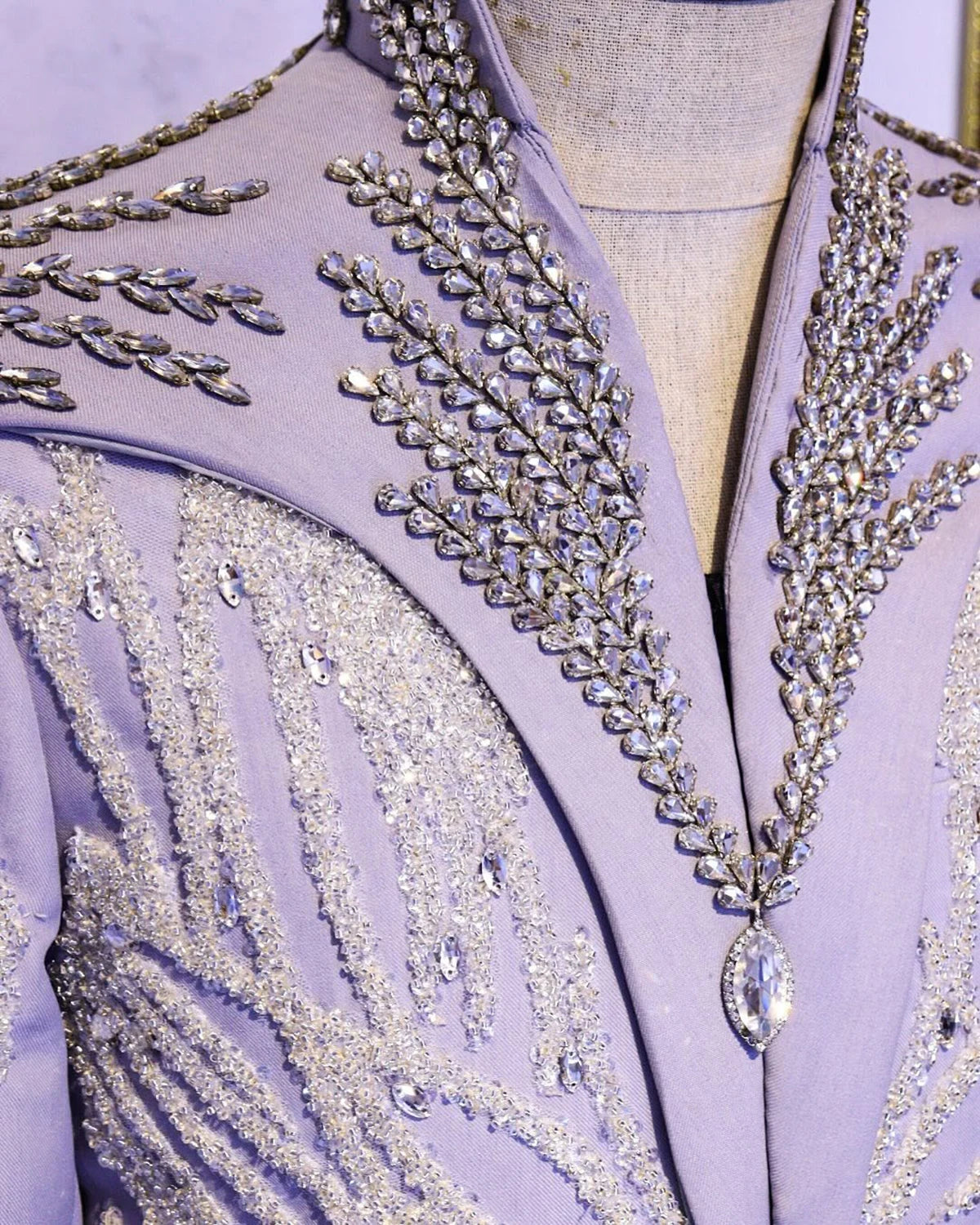 Make a dramatic entrance with this couture-inspired, tailor‑made single-piece jacket featuring full crystal beading and sequins, paired with an integrated or detachable cape. Designed for evening events, stage performances, cosplay, and high-impact wedding or red‑carpet moments, this bespoke blazer combines dazzling ornamentation with expert tailoring for maximum presence.
