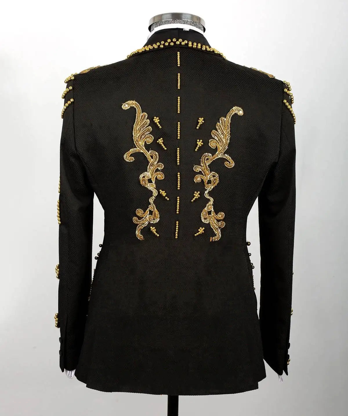 Make a statement on your special day with our Luxury Men's Wedding Suit Set, featuring a sophisticated shawl lapel and single-breasted design. This exquisite two-piece tuxedo is adorned with intricate appliqu��s and beads, adding a touch of glamour to your groom's ensemble. The set includes a tailored blazer and matching Vest both customized for a perfect fit. Ideal for weddings and parties, this luxurious tuxedo ensures you look your best while celebrating unforgettable moments.