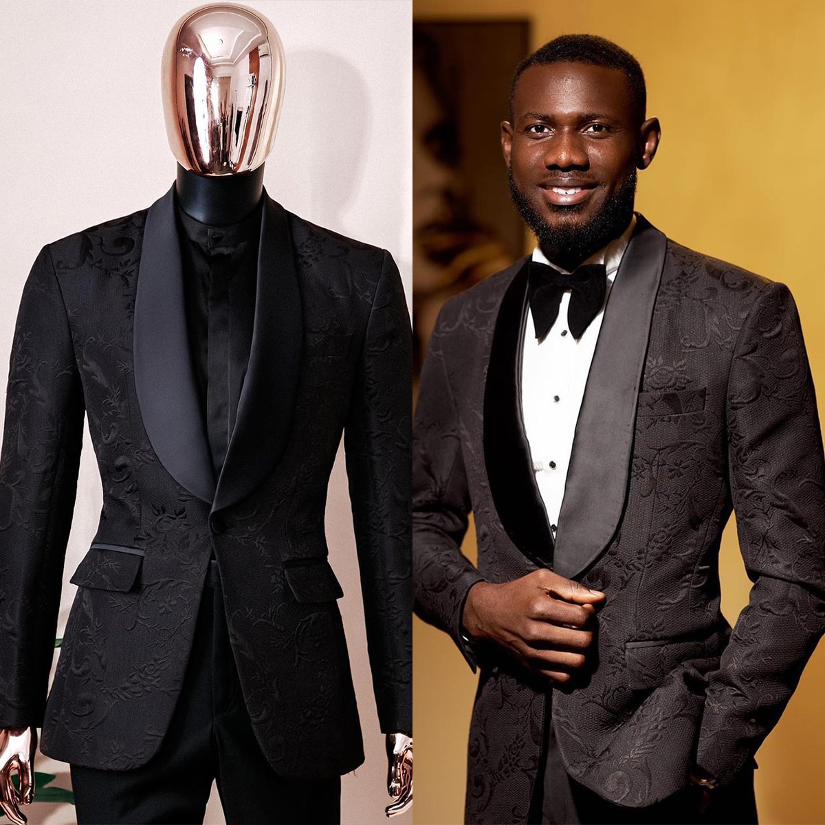 Men's Suits Tailored 2 Pieces Jacquard Blazer Pants One Button Wedding Satin Sheer Lapel Formal Custom Made Plus Size