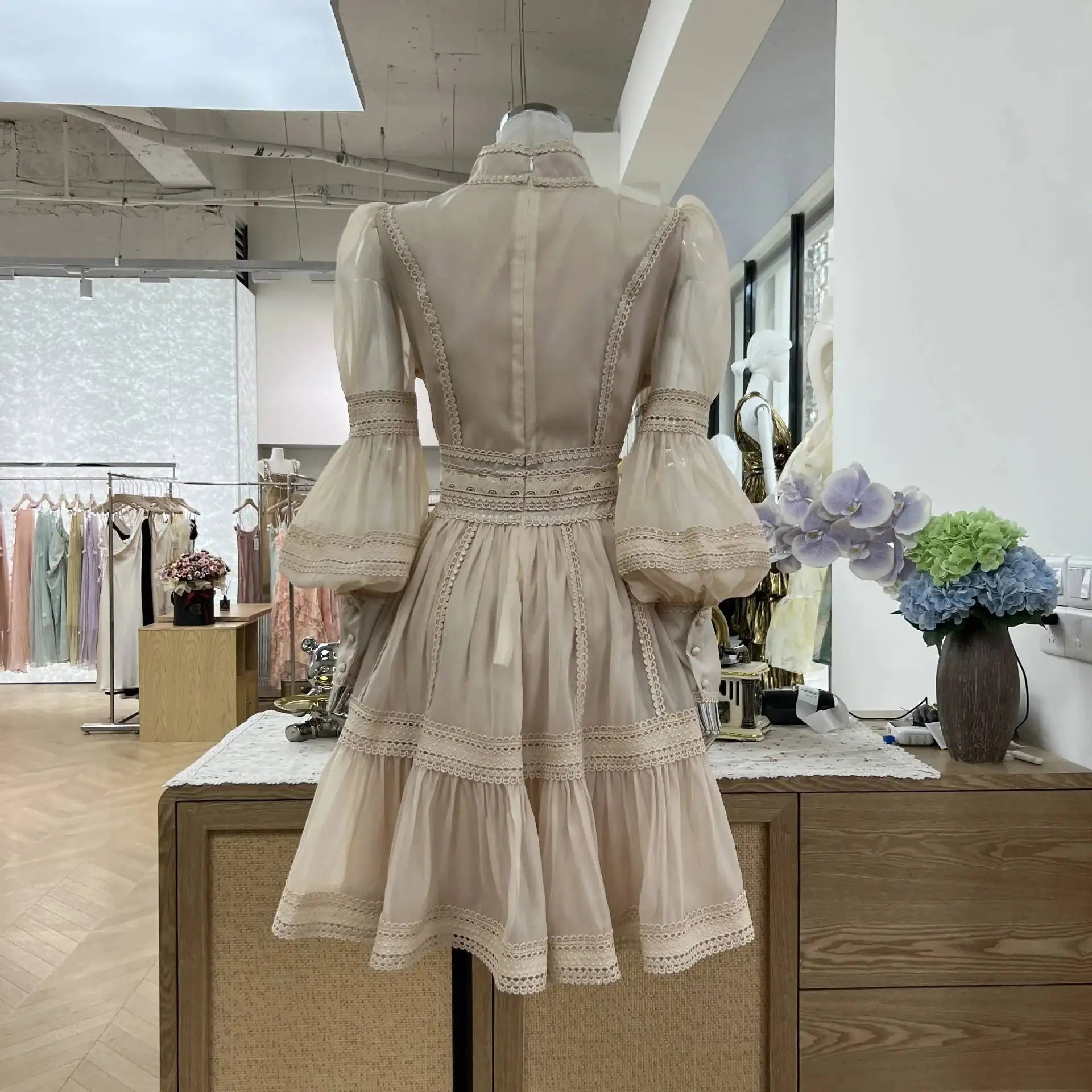 Luxury Organza Prom Evening Dresses Women Summer Autumn Sweet Elegant Lantern Long Sleeve Short Dress Shirt Party Night Formal
