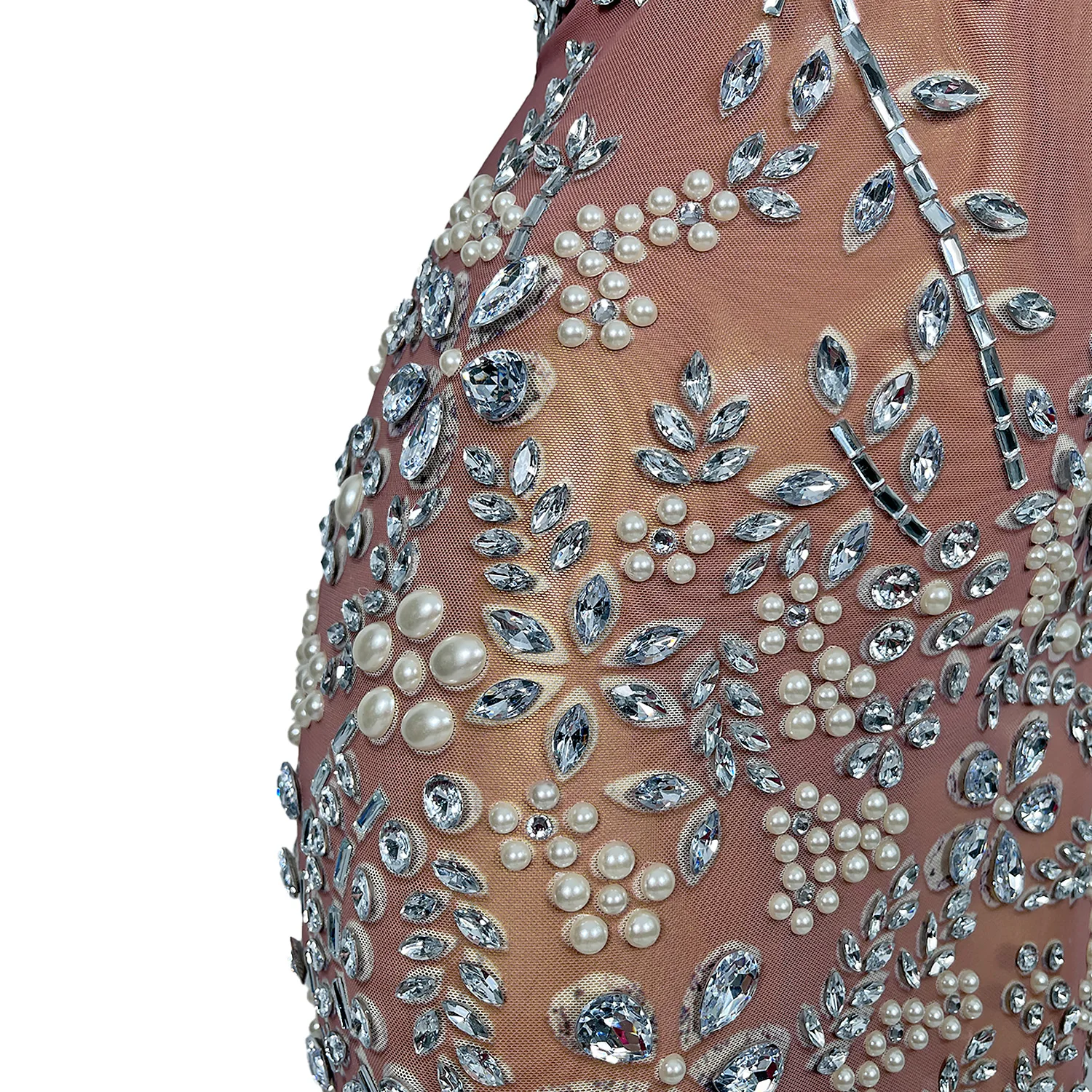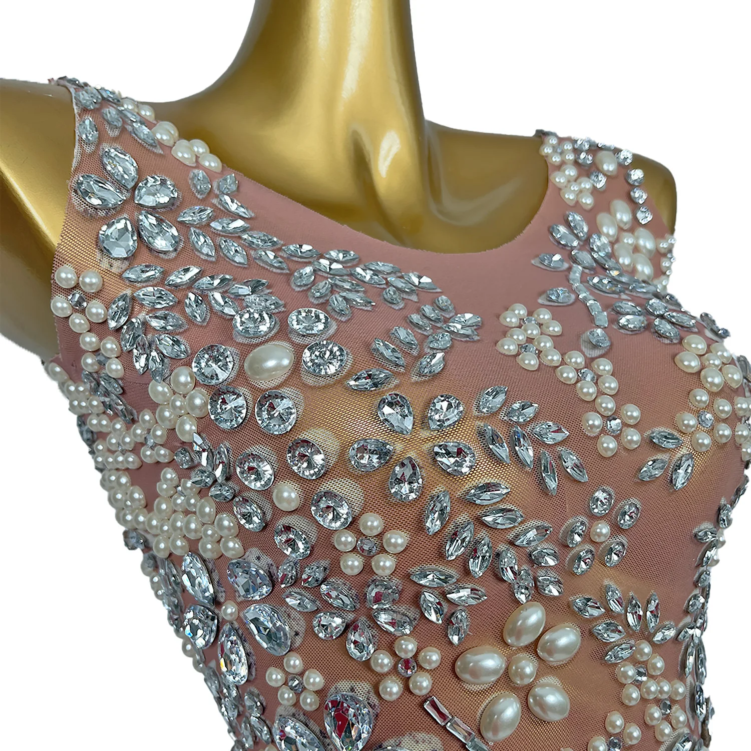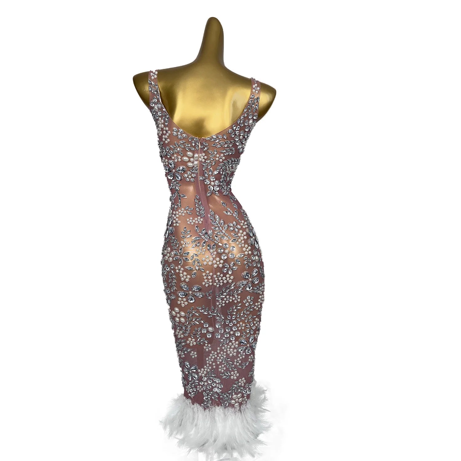 Luxury Pearl Diamonds Dress Women Ball Gown Wedding Dress Fashion Feather Shining Rhinestone Cocktail Party Dresses Meihua