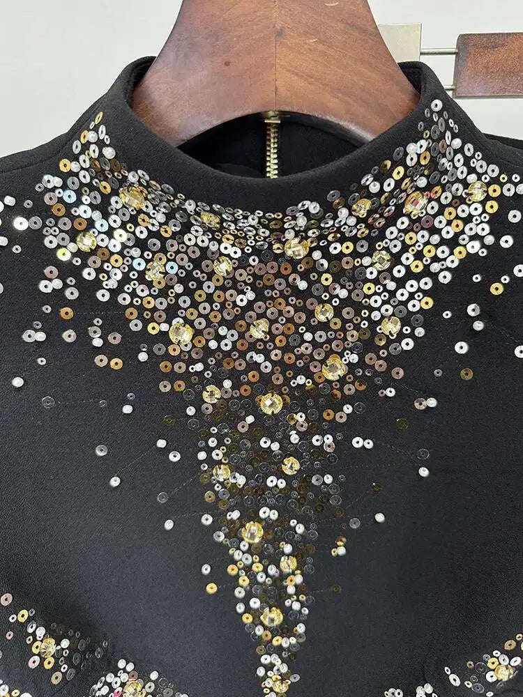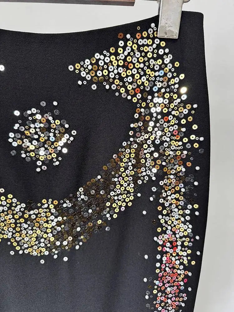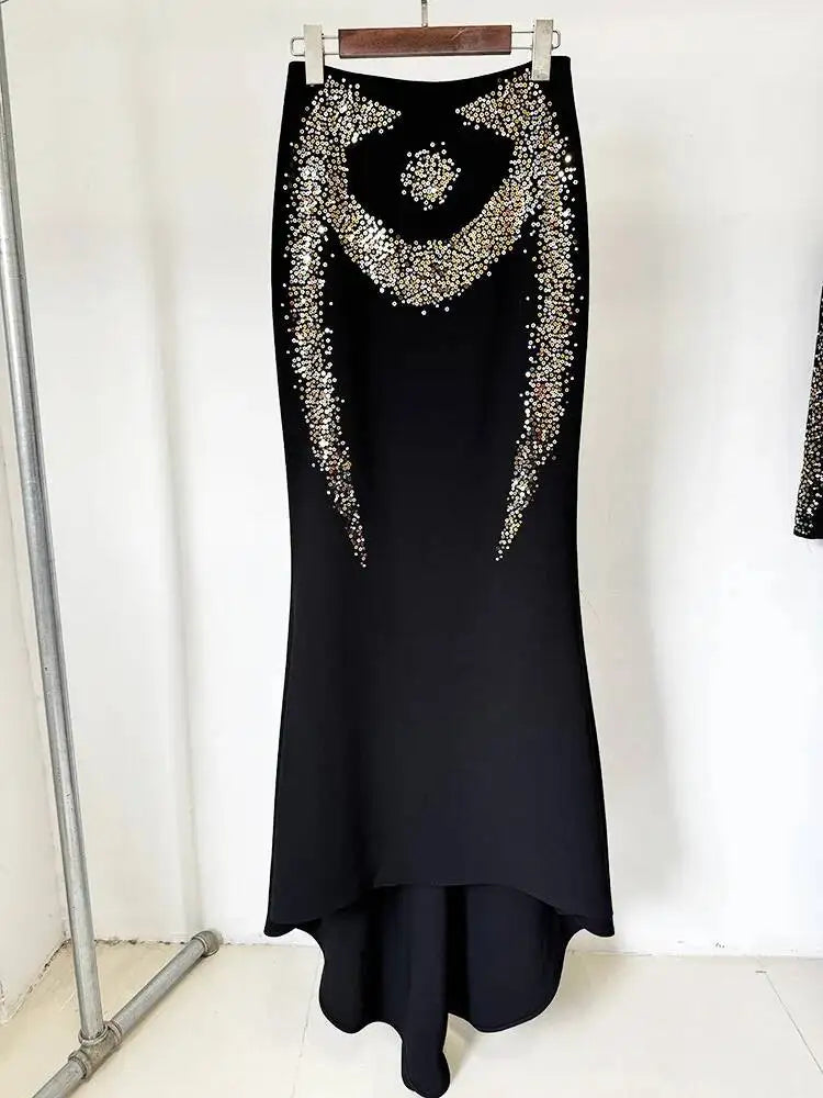 Luxury Sequin 2 Piece Set Women Long Sleeve Jacket Coat Mermaid Fishtail Maxi Skirts Suit 2pcs Outfits Formal Evening Dresses