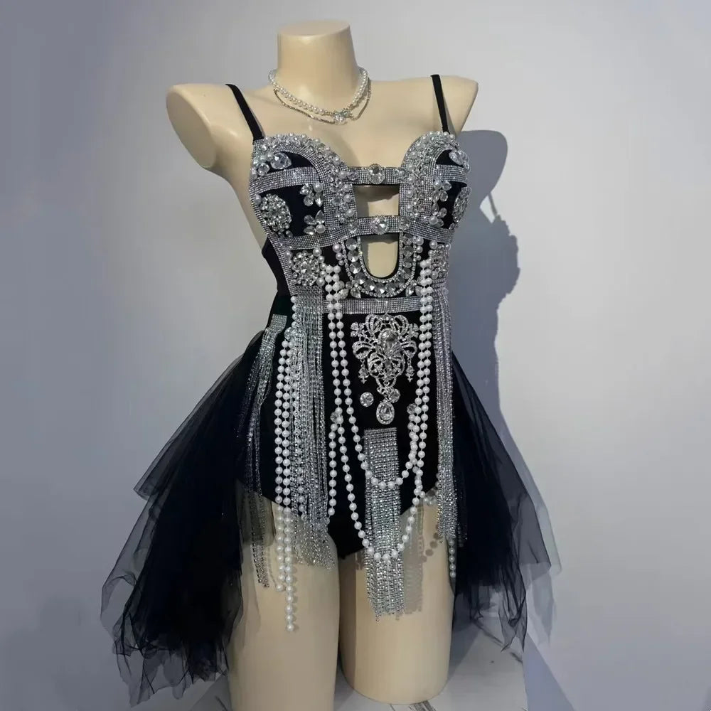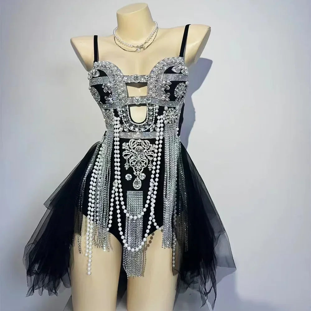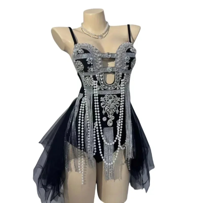 Step into the spotlight with our Luxury Silver Rhinestones Tassel Bodysuit, designed for women ready to make a statement in nightclubs and on stage. This sexy stage wear features a stunning array of silver rhinestones that catch the light beautifully, while the playful tassels add dynamic movement to your performance. Perfect for singers and performers, this costume mixes glamour with boldness, ensuring you command attention at any event or rave. Elevate your stage presence and shine bright in this exquisite bodysuit!