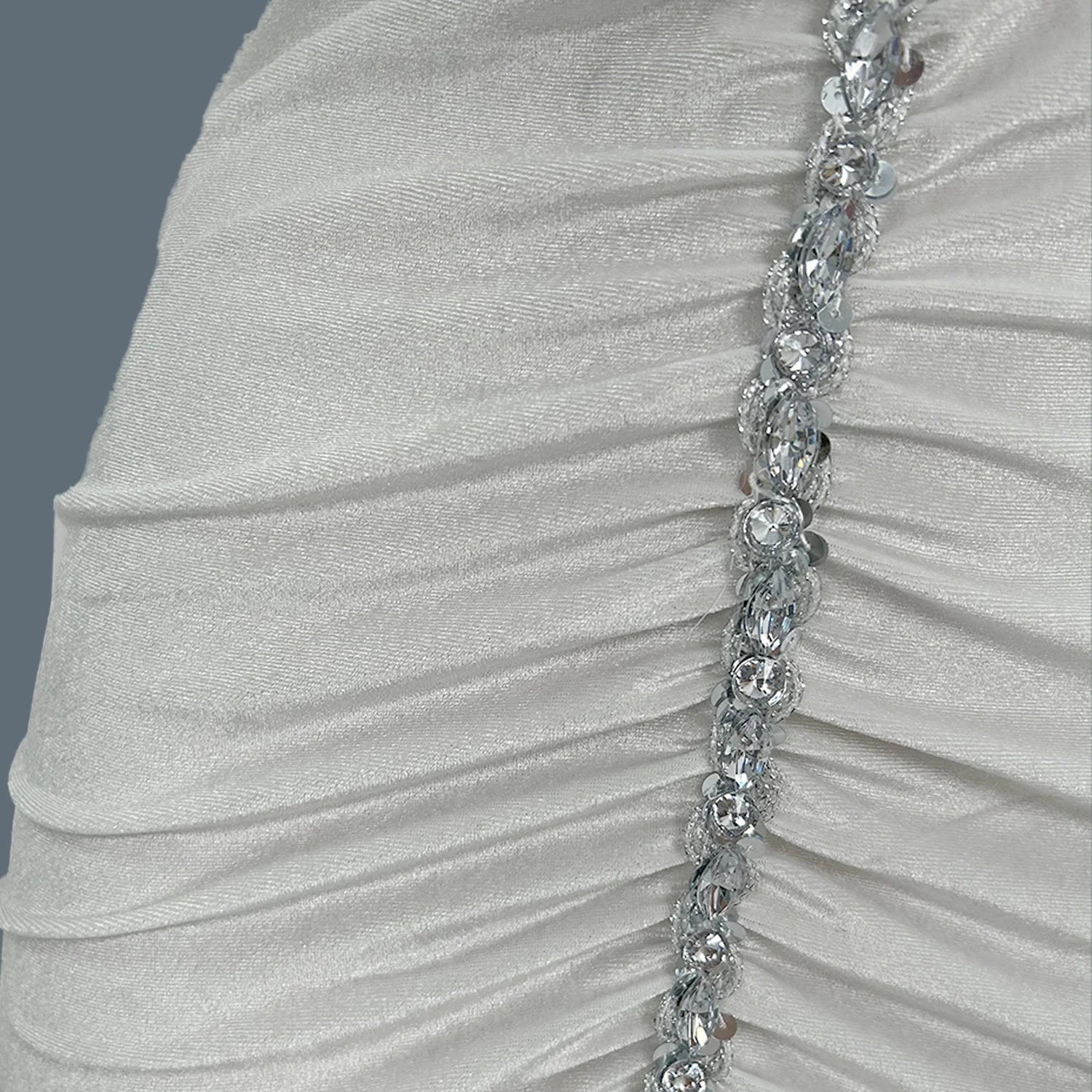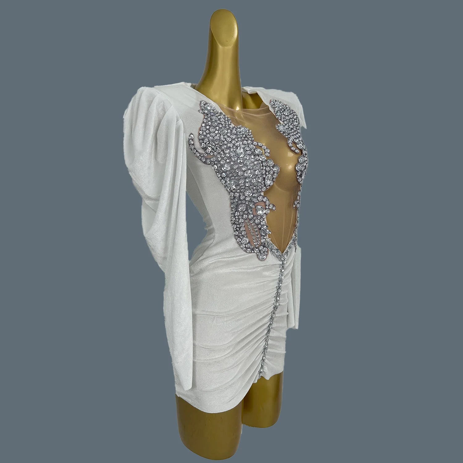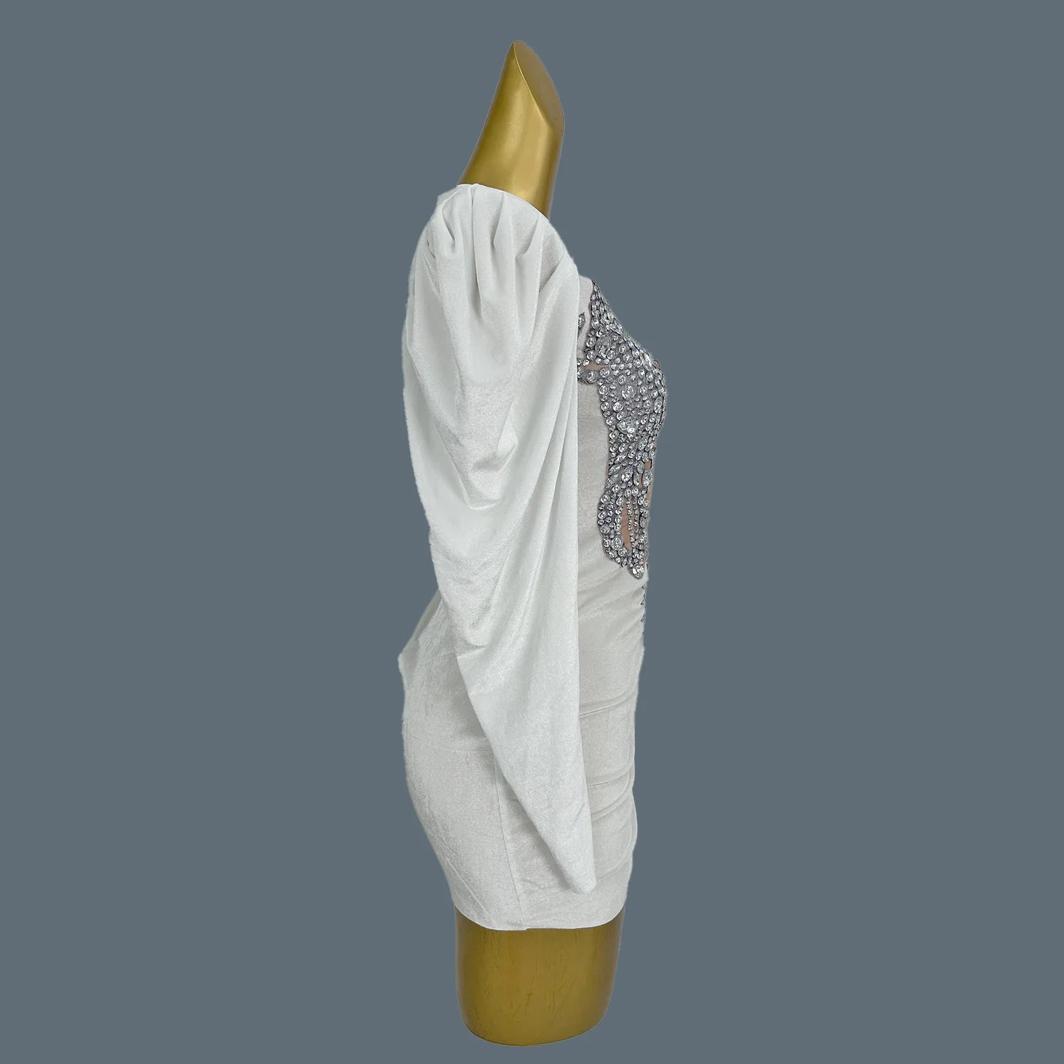 Radiate elegance in this Luxury Sparkly Crystals Short Dress, designed for women who appreciate sophisticated style. This stunning white dress features luxurious velvet fabric adorned with intricate sparkly crystals, making it perfect for evening events, proms, and birthday parties. The elegant design enhances your figure while ensuring comfort for dancing the night away. Make a memorable entrance at any club or special occasion with this beautiful gown that showcases your refined taste and style!