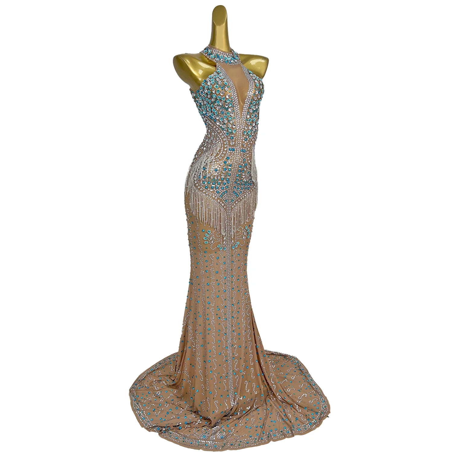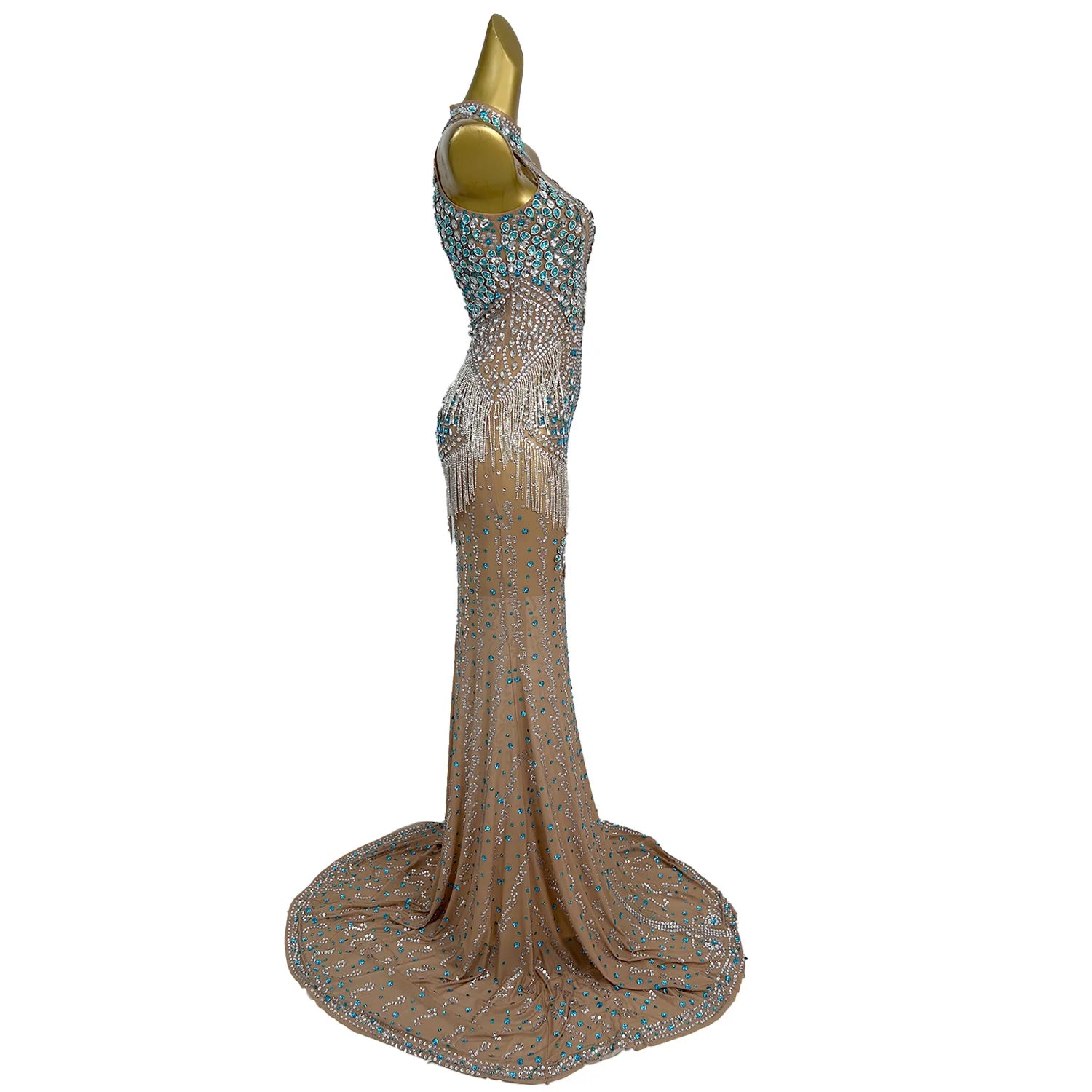 Luxury Sparkly Rhinestone Wedding Evening Gown Elegant Gala Prom Floor-length Dresses Party Event Women Sexy Outfit