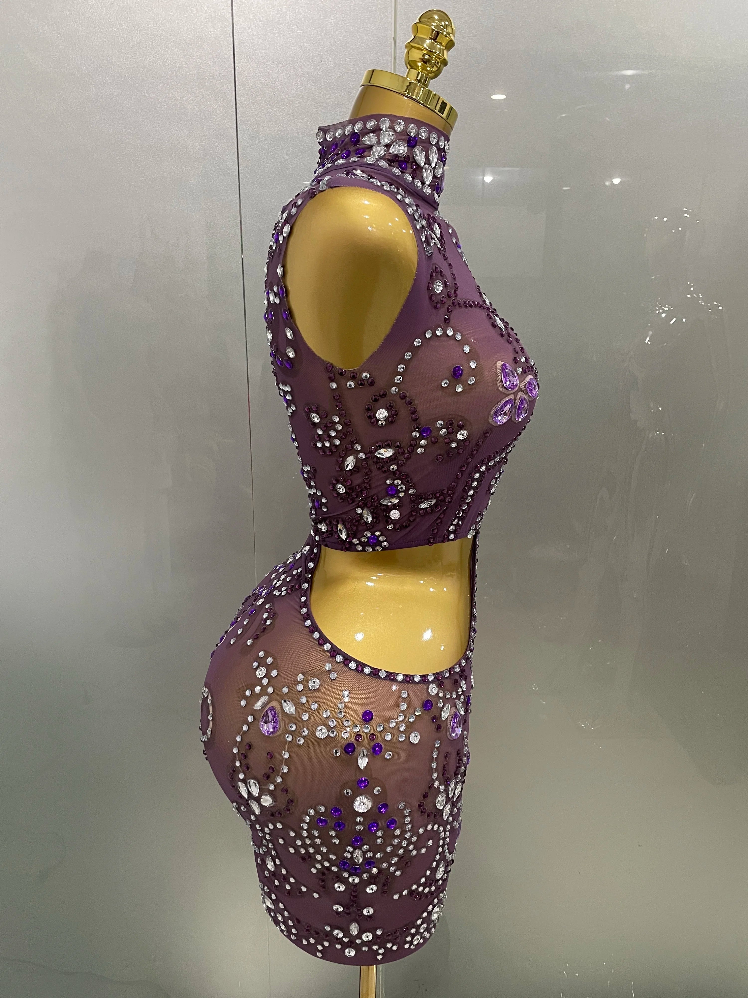 Elevate your celebration and stage presence with theLuxury Sparkly Rhinestones Purple Sleeveless Waist Hollow Sexy Dress— a dazzling, show-stopping outfit designed for singers, performers, and women who want to make a bold statement at birthdays, parties, and photoshoots.