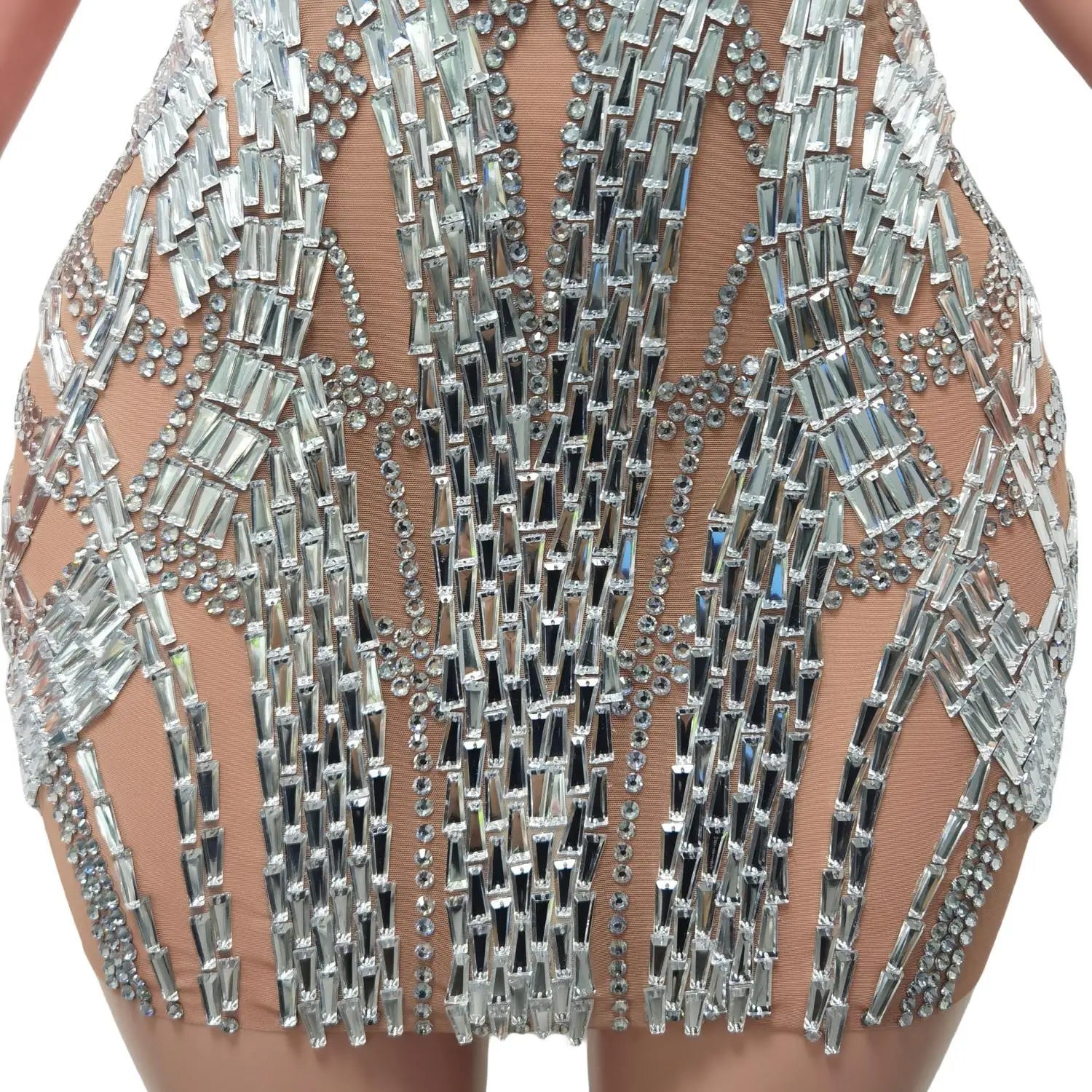 Shine bright in this Luxury Sparkly Rhinestones Silver Sleeveless Short Dress. Perfect for Women's Birthday Celebrations, Party Outfits, Singer Stage Performances, and more, this dress exudes glamour and elegance. The rhinestone embellishments add a touch of sparkle, making it a standout piece for any special occasion. Step into the spotlight and celebrate in style with this stunning and eye-catching dress.