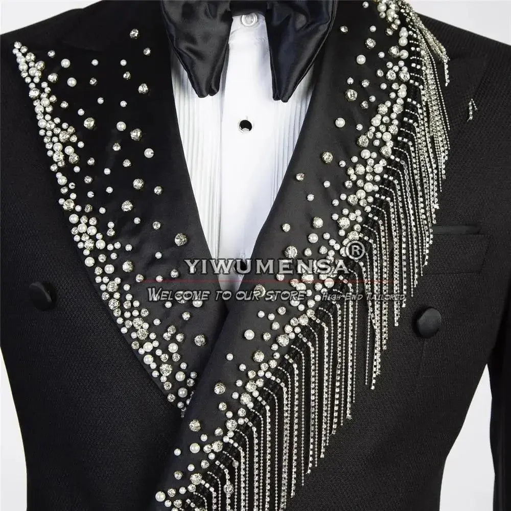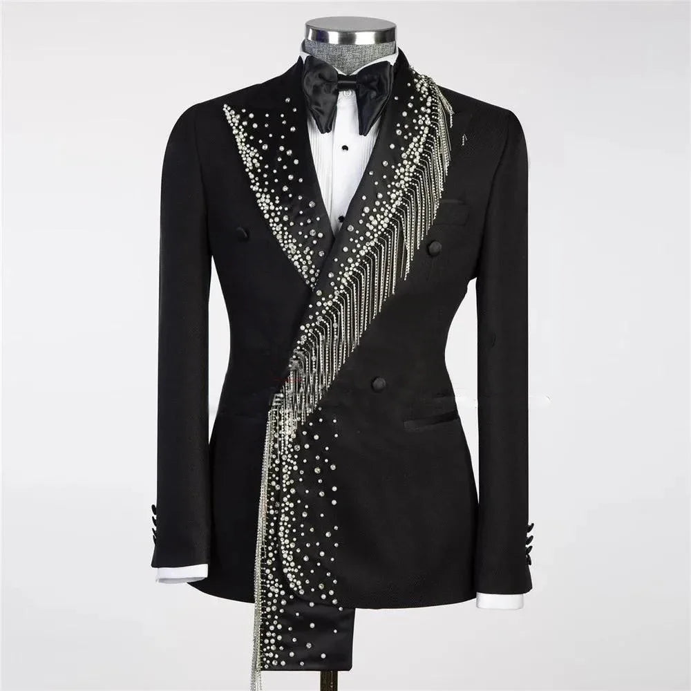 Luxury Suit For Men 2 Pieces Double Breasted Outfit Set Suits Jacket with Pants Mens Clothing Wedding Tuxedo