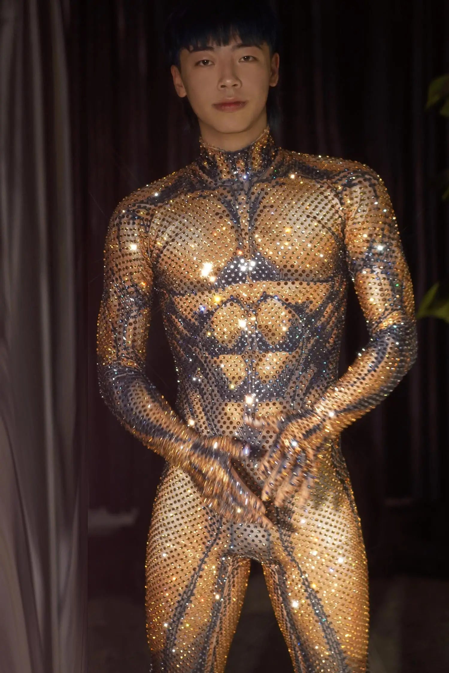 Men Luxury Fashion Shinny Crystal Jumpsuit Sexy One Piece Body Suit Men Celebrity Party Costume Drag Queen Festival Outfit