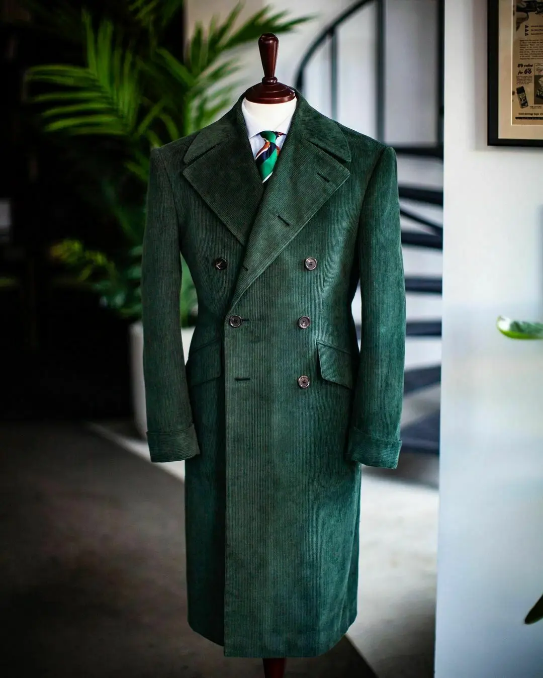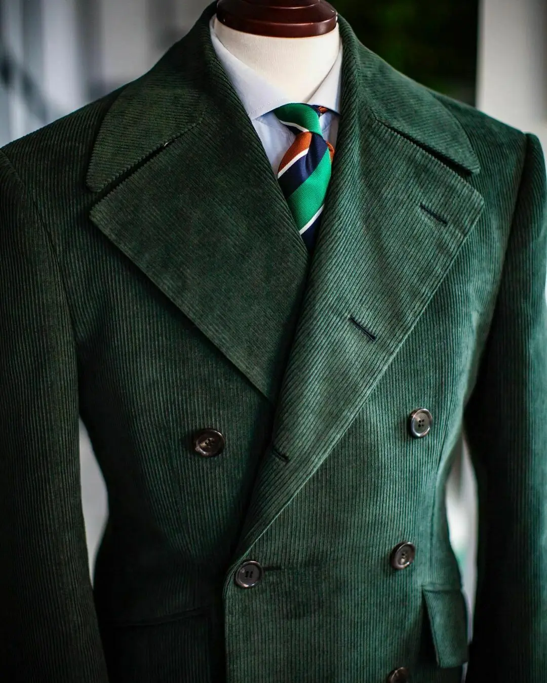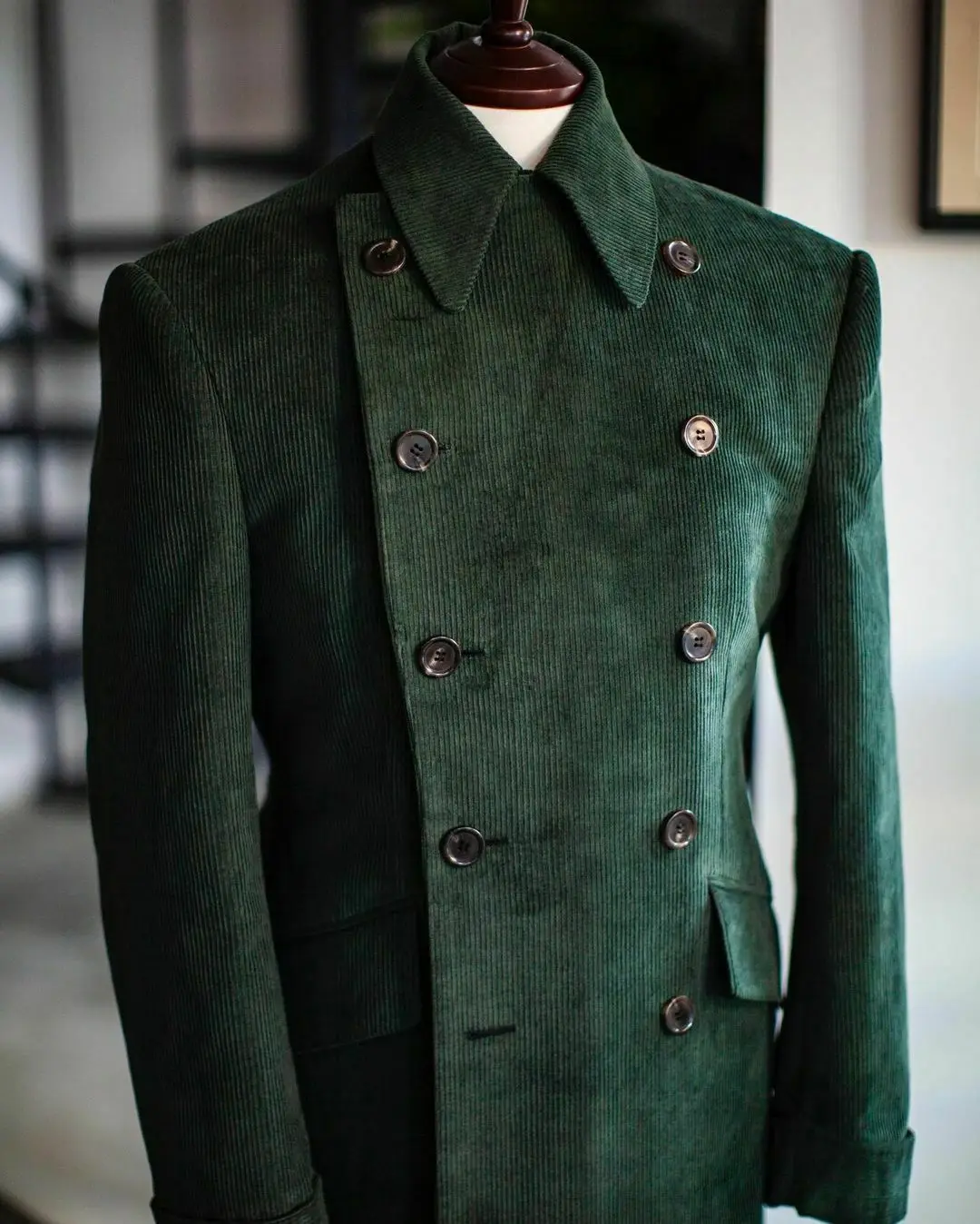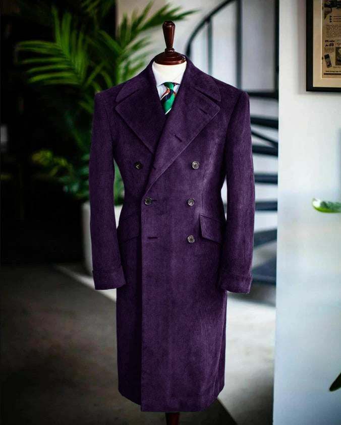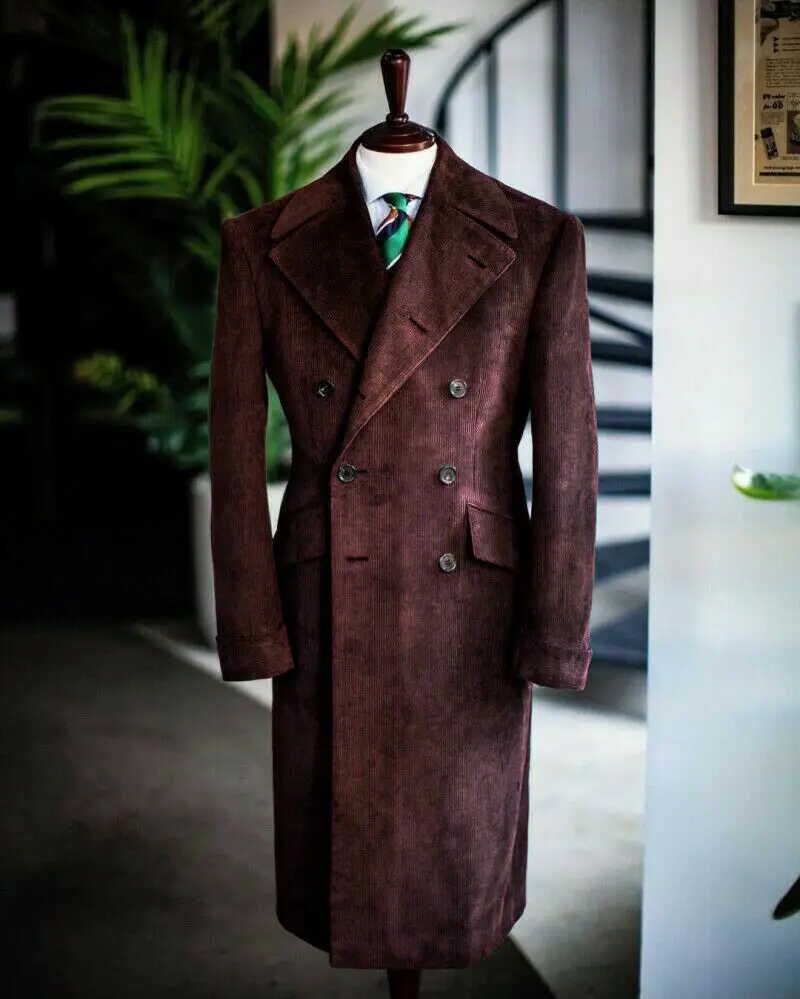 Men's Corduroy Notched Lapel Tuxedo Jacket Double Breasted Blazer Long Coat Wedding Prom Dress Custom