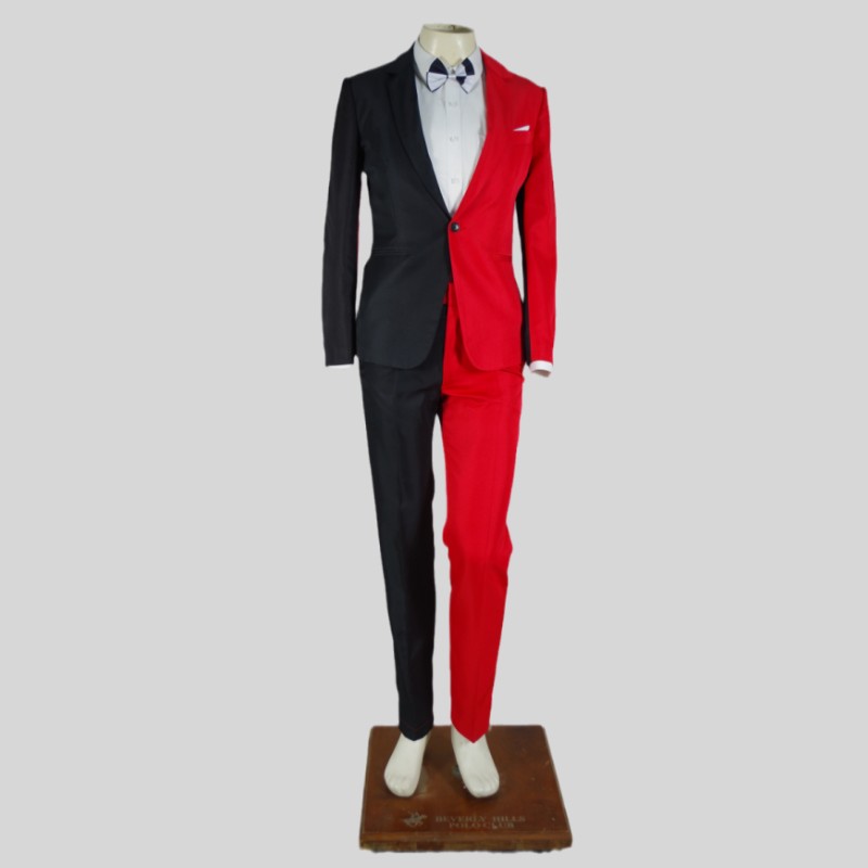 Men's Personality Mixed Color Suit Red Black White Splicing Blazer Pants 2 Piece Set for Stage Singer Chorus Magician Groomsman