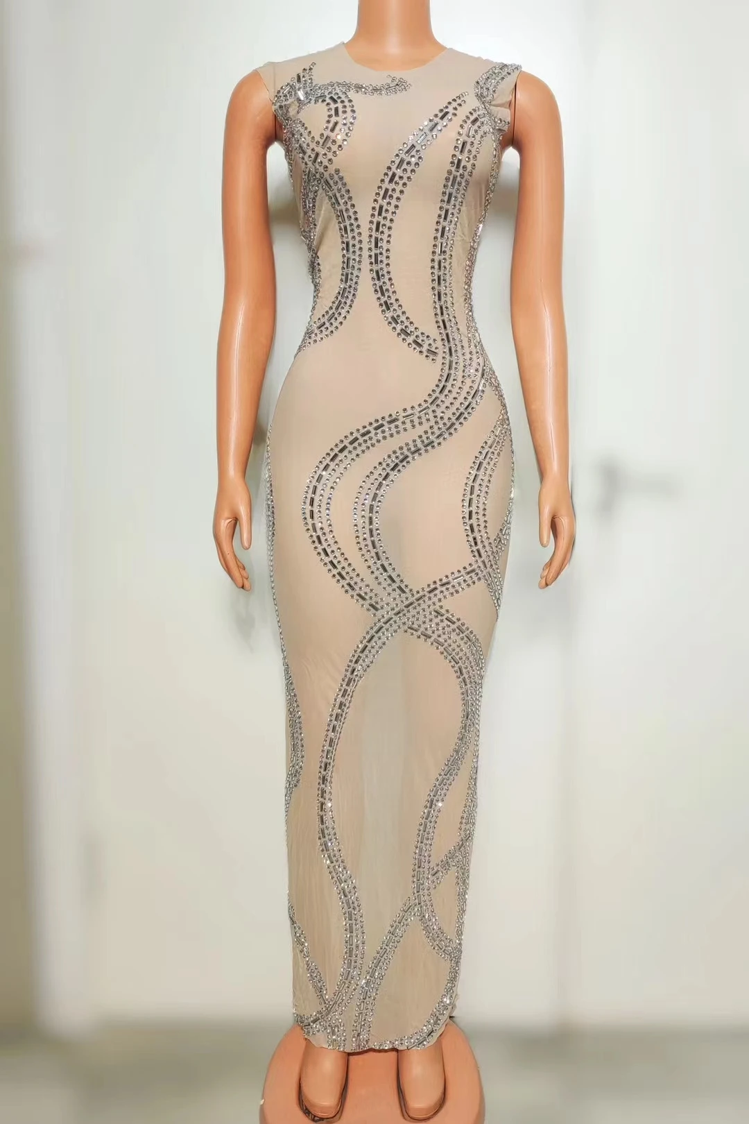 Mesh Elegant Sleeveless Long Prom Dress for Women Hot Drilling Process Rhinestone Birthday Drag Queen Costume Chanrao