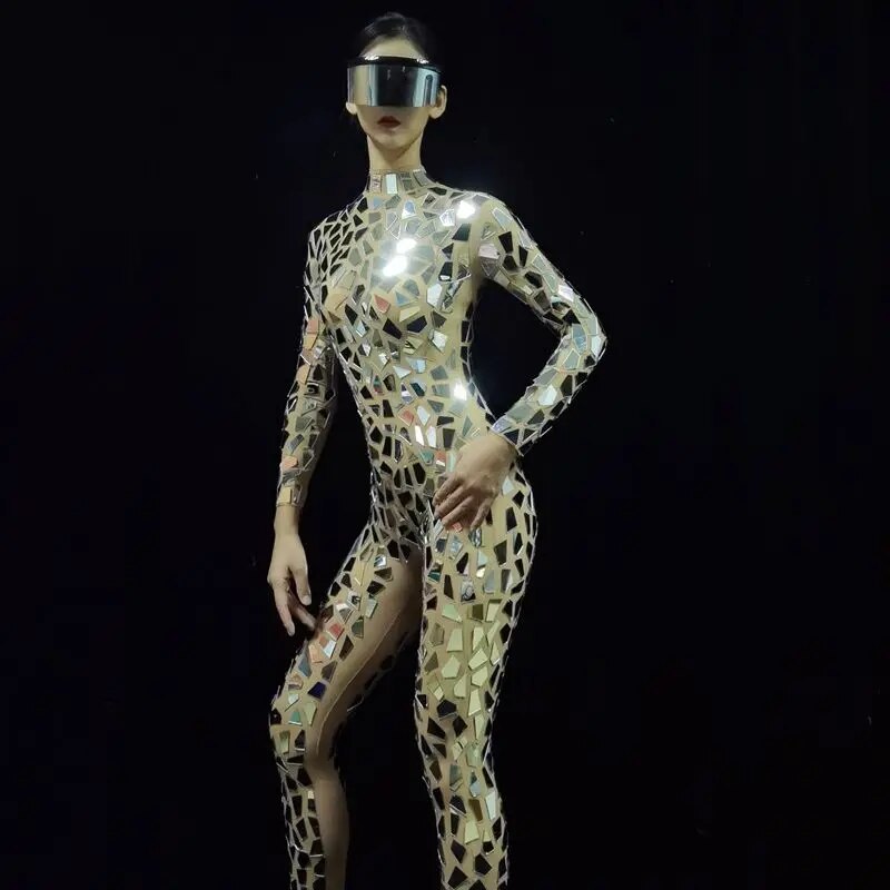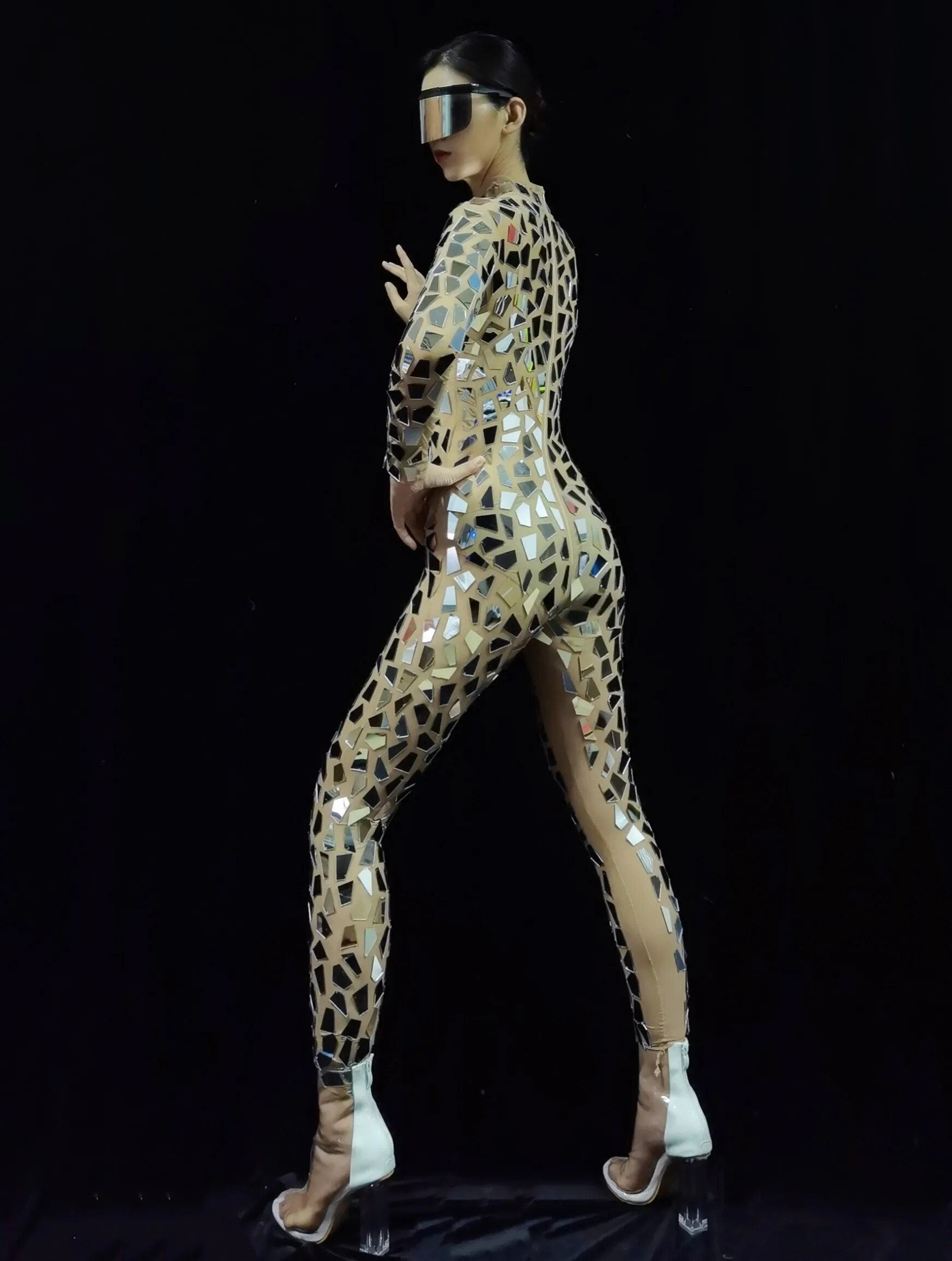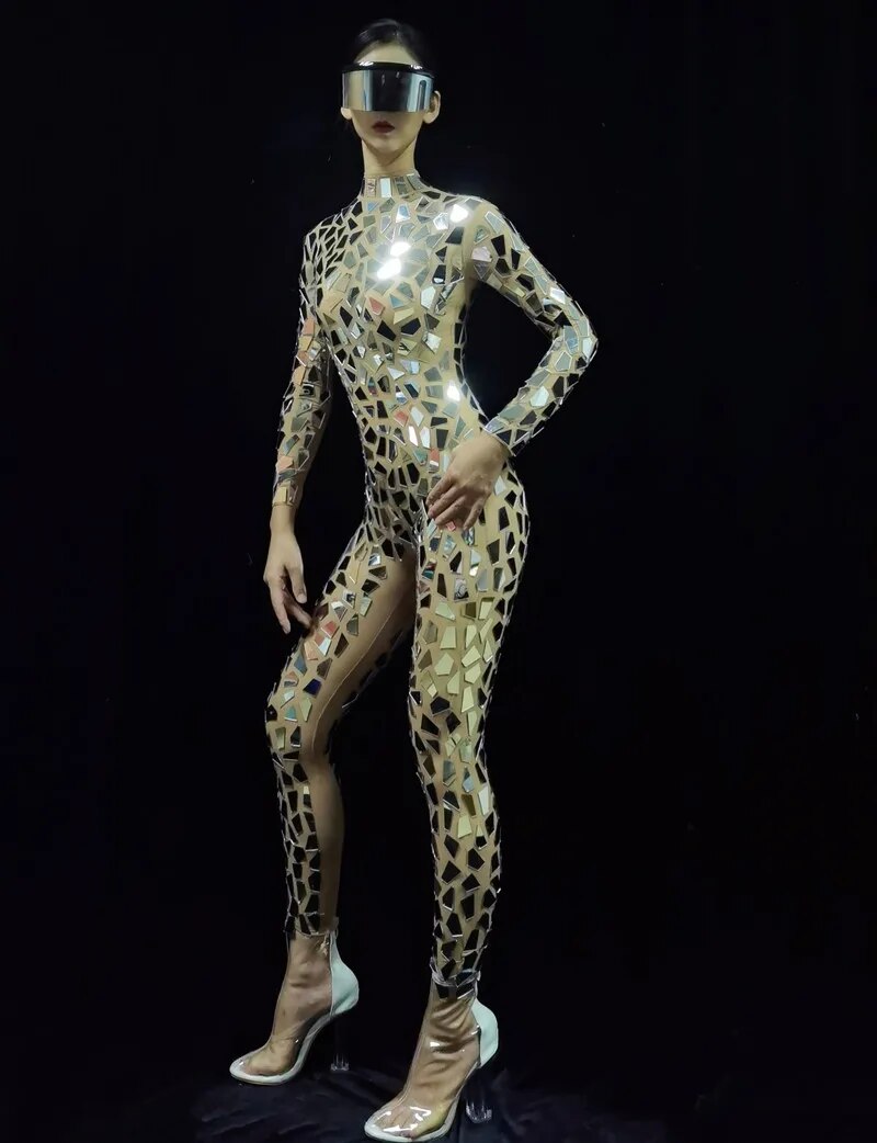 Mirrors Costumes Silver Sequins JumpsuitBright Evening Outfit Nightclub Bar DragQueen Costumes Stage Skinny Rompers