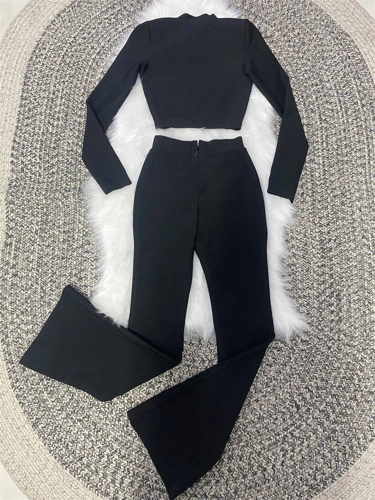 Autumn Style Black Color Women Fashion Office Lady Slim Coat Pants Set Rayon Bandage Celebrate Evening Party Women's Set