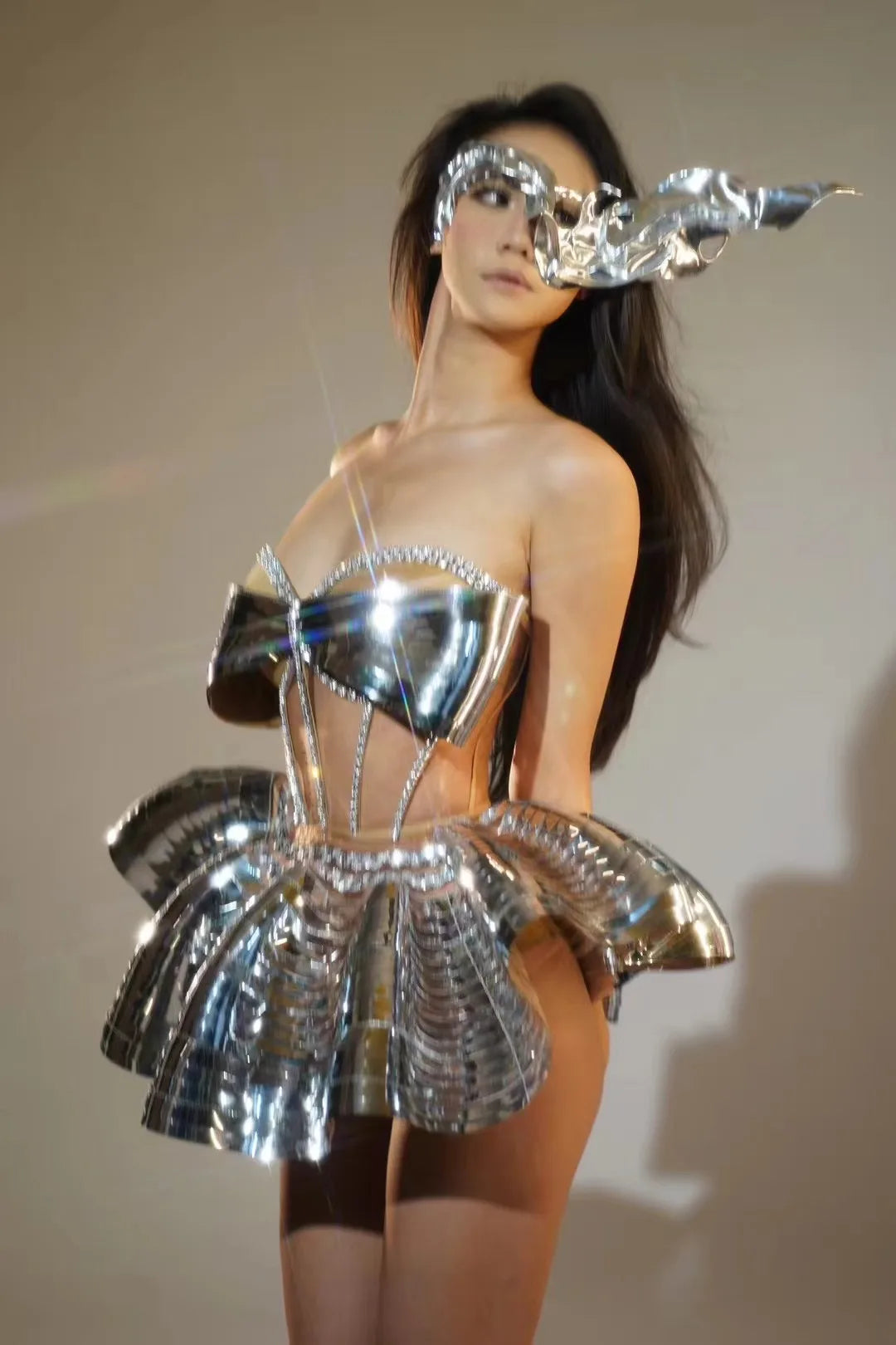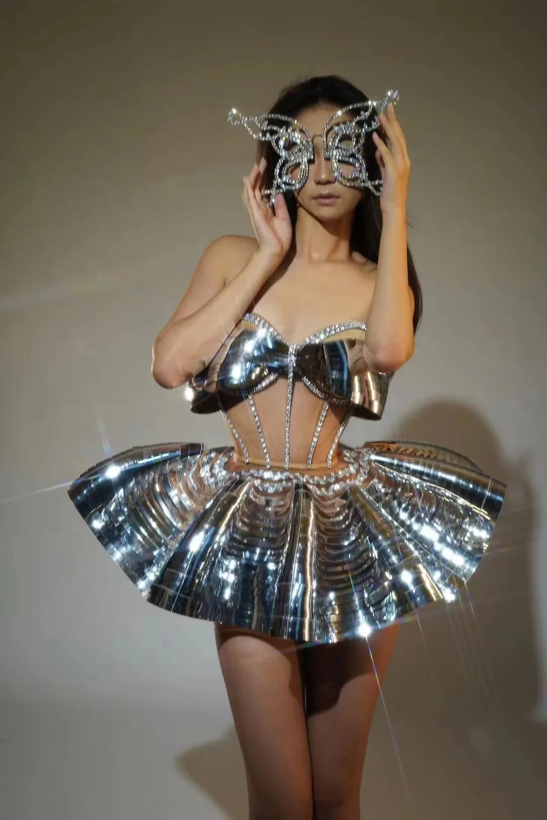 New Bar Flying Saucer Performance Clothing Gogo Silver Skirt Suit Electronic Syllable Dj Singer Dance Costume Customization