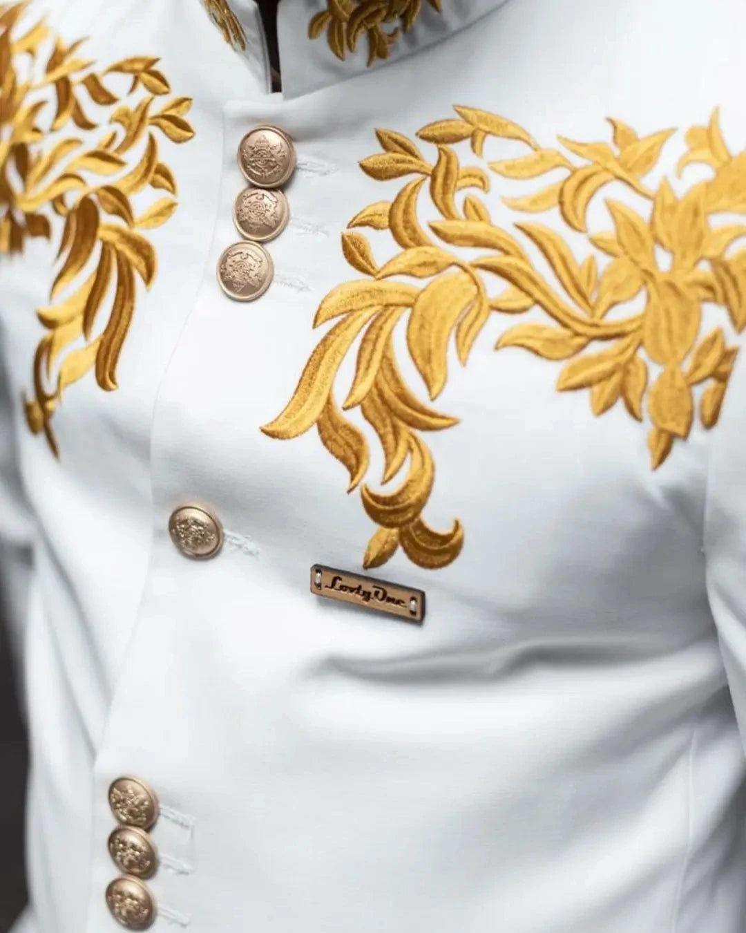 Appliques 2 Pieces Blazer Pants Men Suits Gold Buttons Slim Fit No Lapel Formal Wedding Groom Work Wear Prom Tailored
