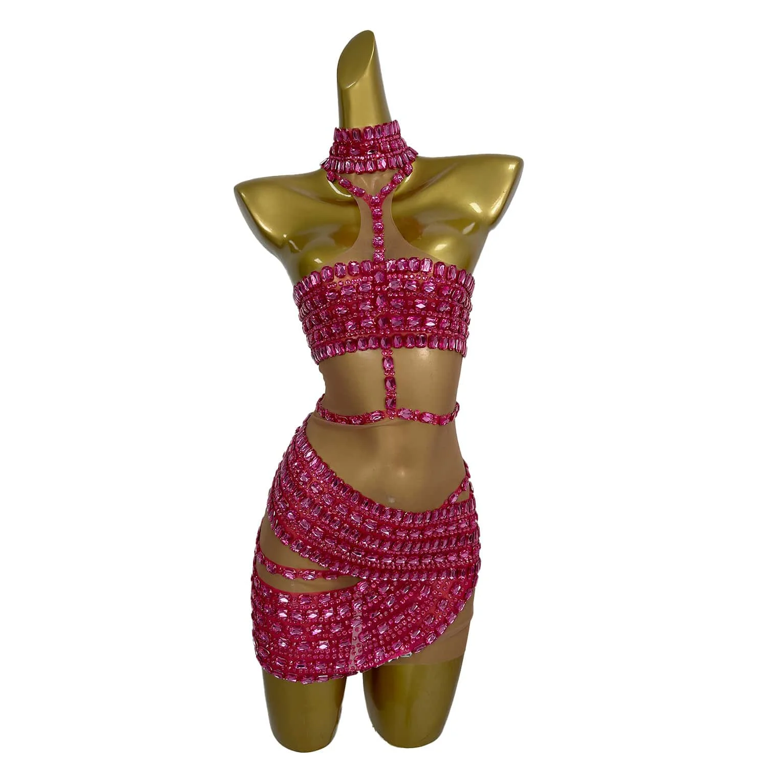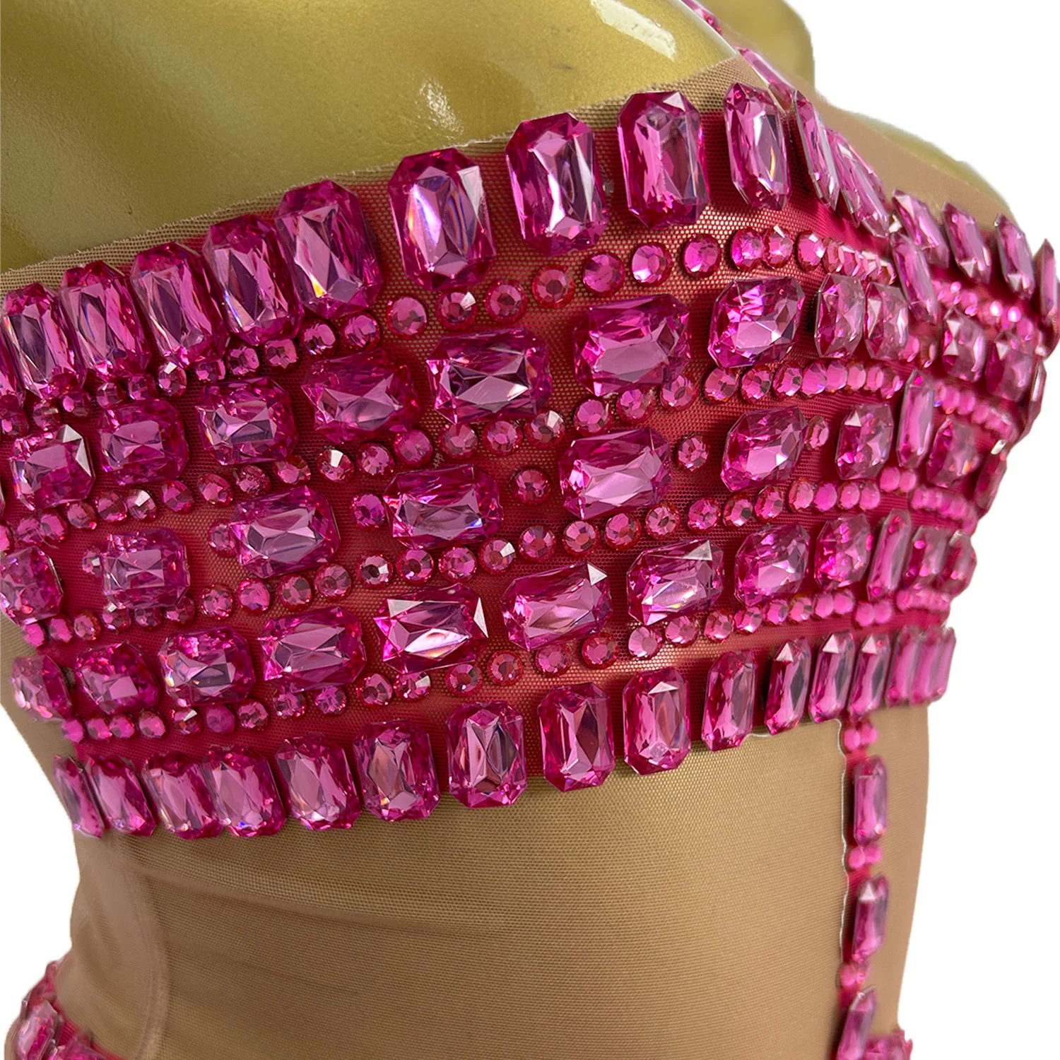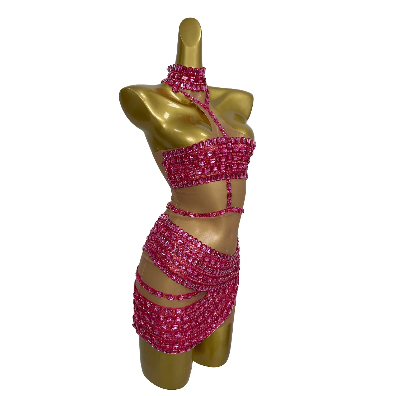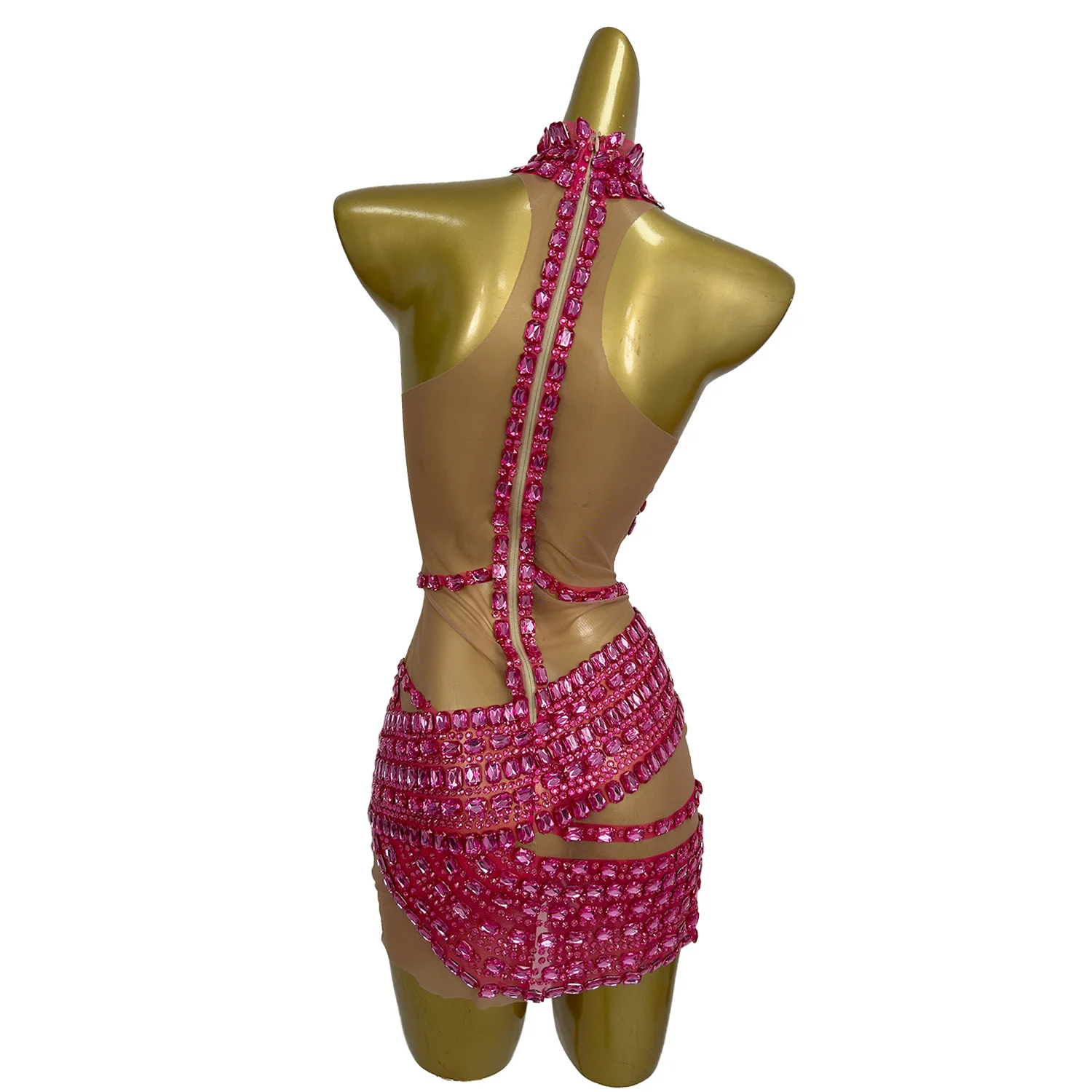 New Nightclub Dance Singer Stage Show Wear Party Activity Clothing Sparkly Diamonds Mesh Luxury Prom Gowns Dress Fangtang