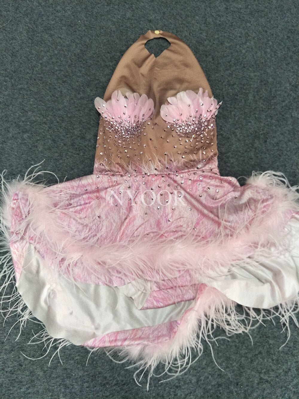 New Pink Feather Sparkly Rhinestone Party Dress Headwear Women Birthday Celebrity Outfit Dance Costume Rave Festival Clothing