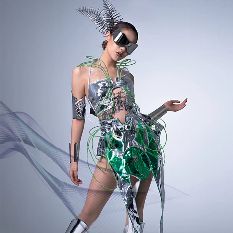 New Punk Futuristic Gogo Dancer Costume Nightclub Rave Wear Music Festival Clothing Singer Dancer Performance Clothes