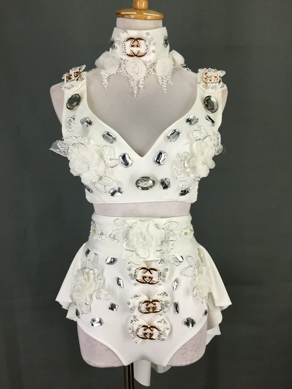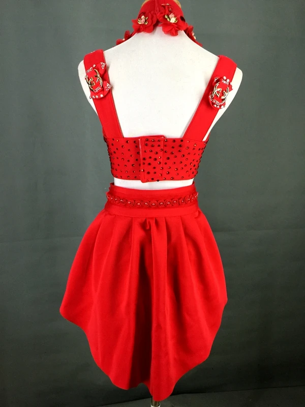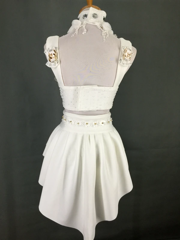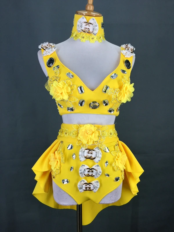 Sexy 4-piece Suit Performance Clothes Pole Dancing Costume for Female Stage Jazz Dance Show Clothes Red Yellow White