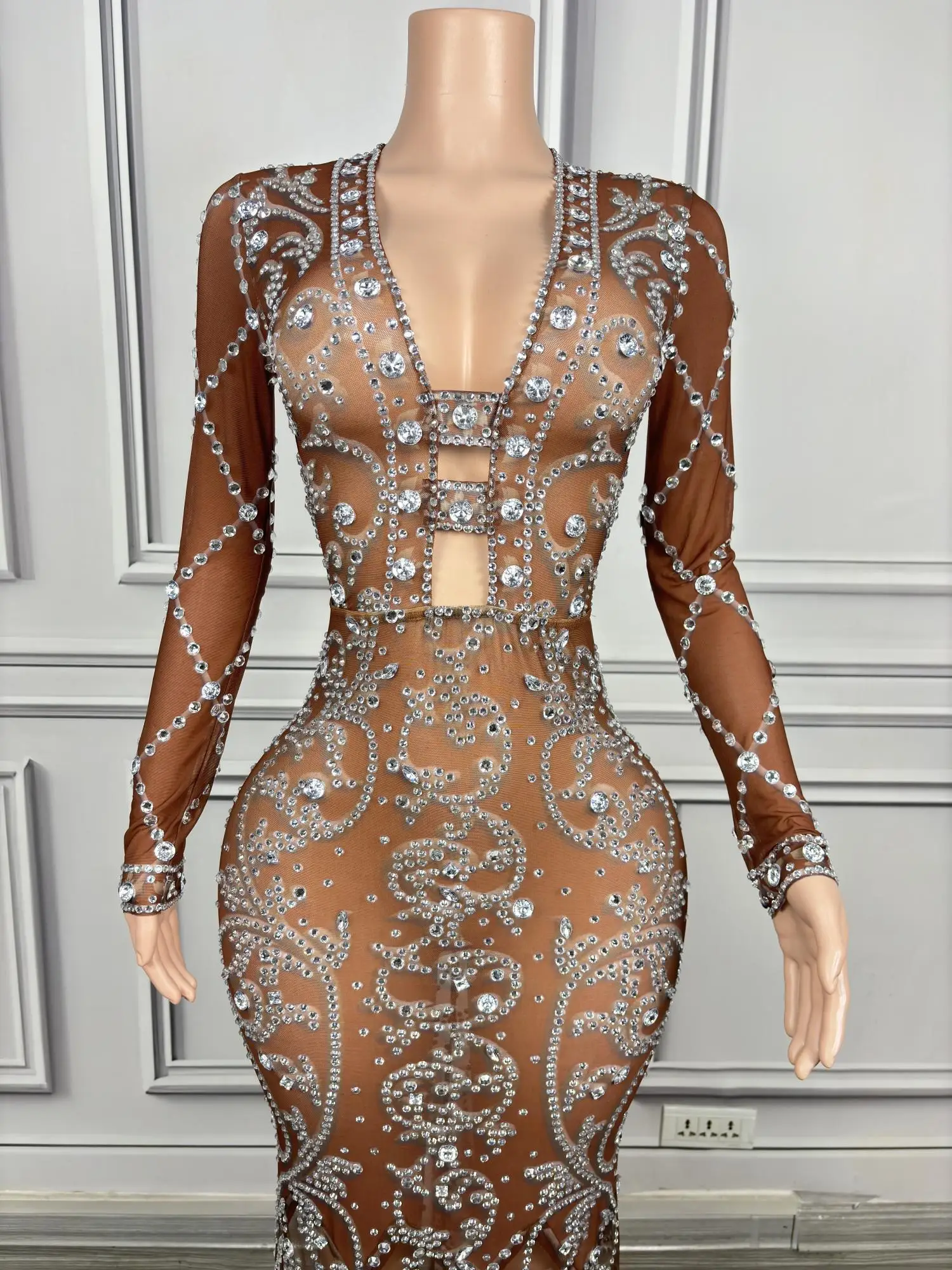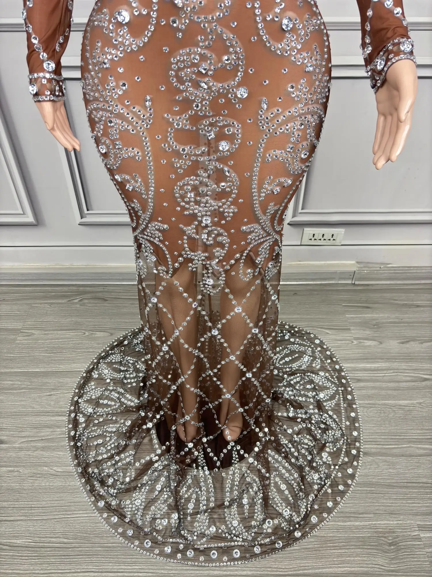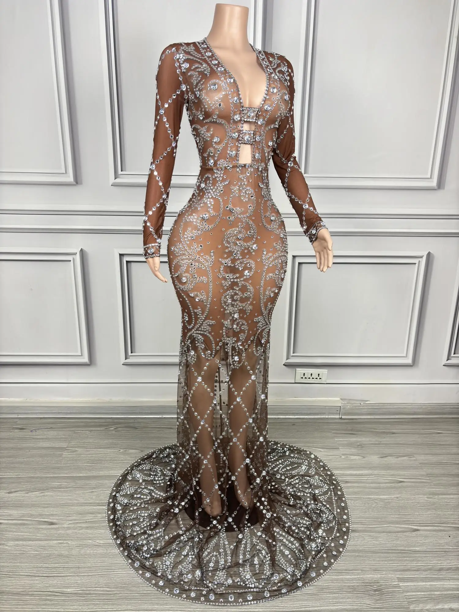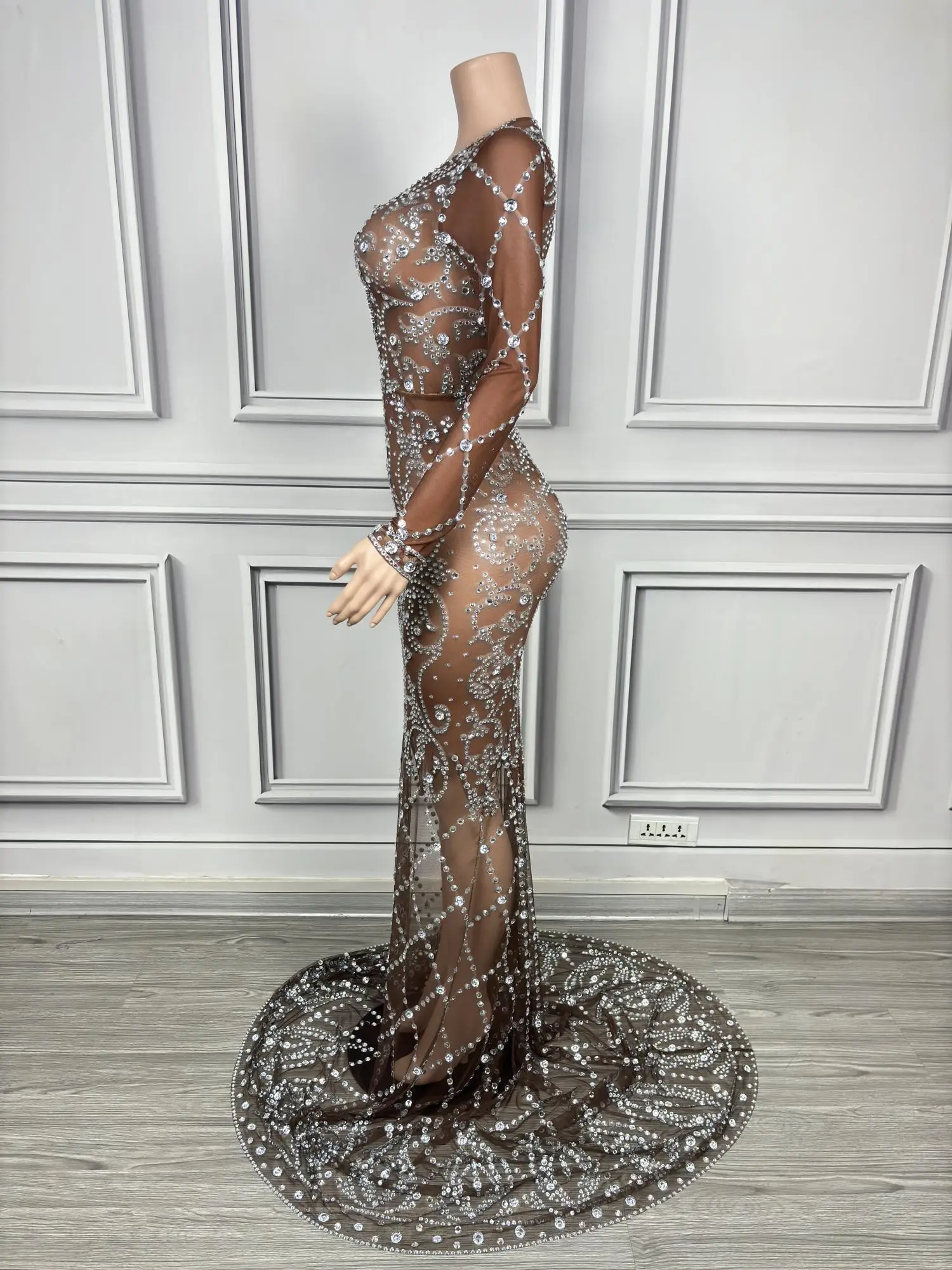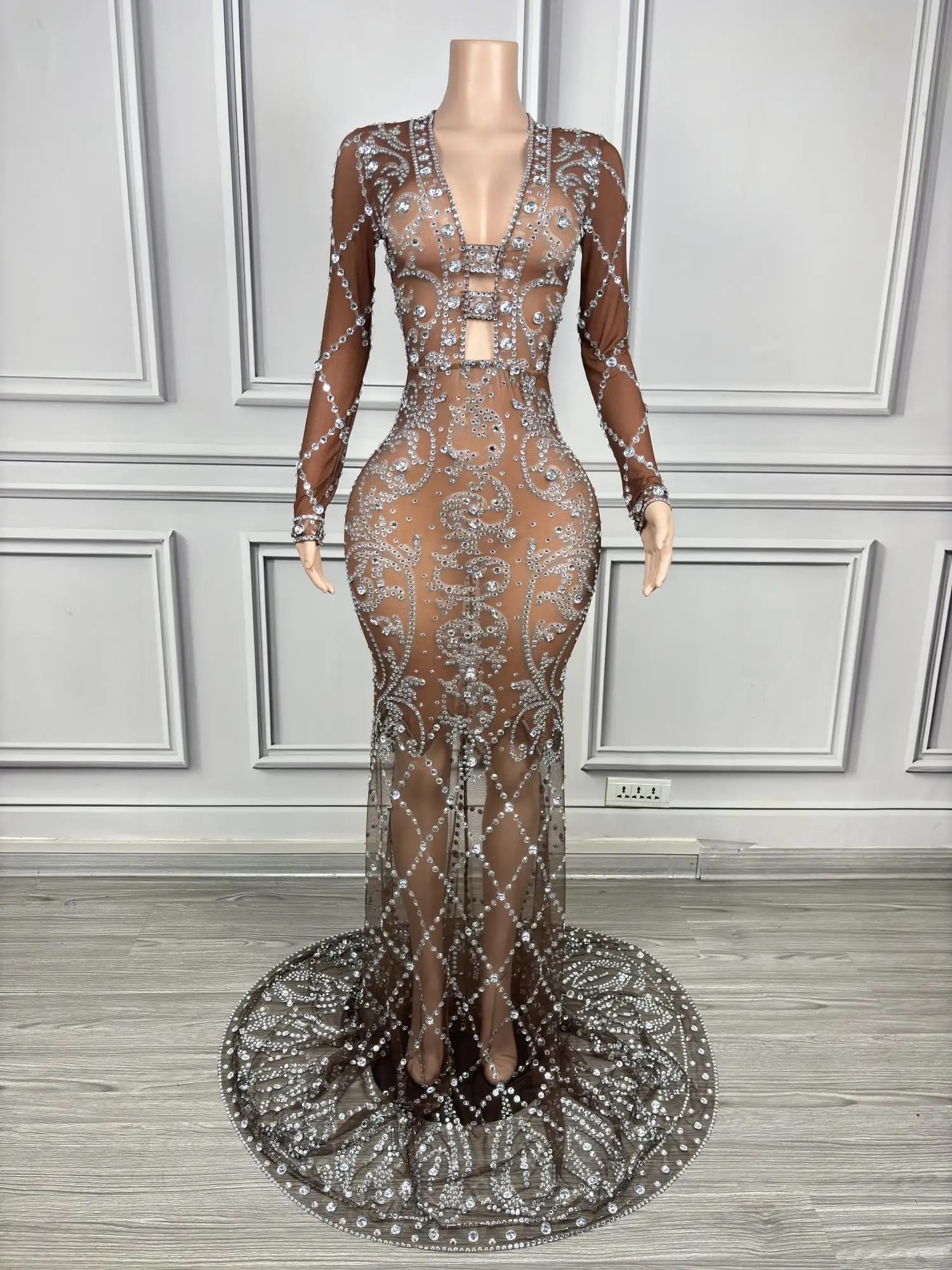 New Style Diamonds Long Tail Dress Evening Bar Women Singer Dancer Dress Birthday Celebrate Prom Gwon Black Grils Dress Suofeiya