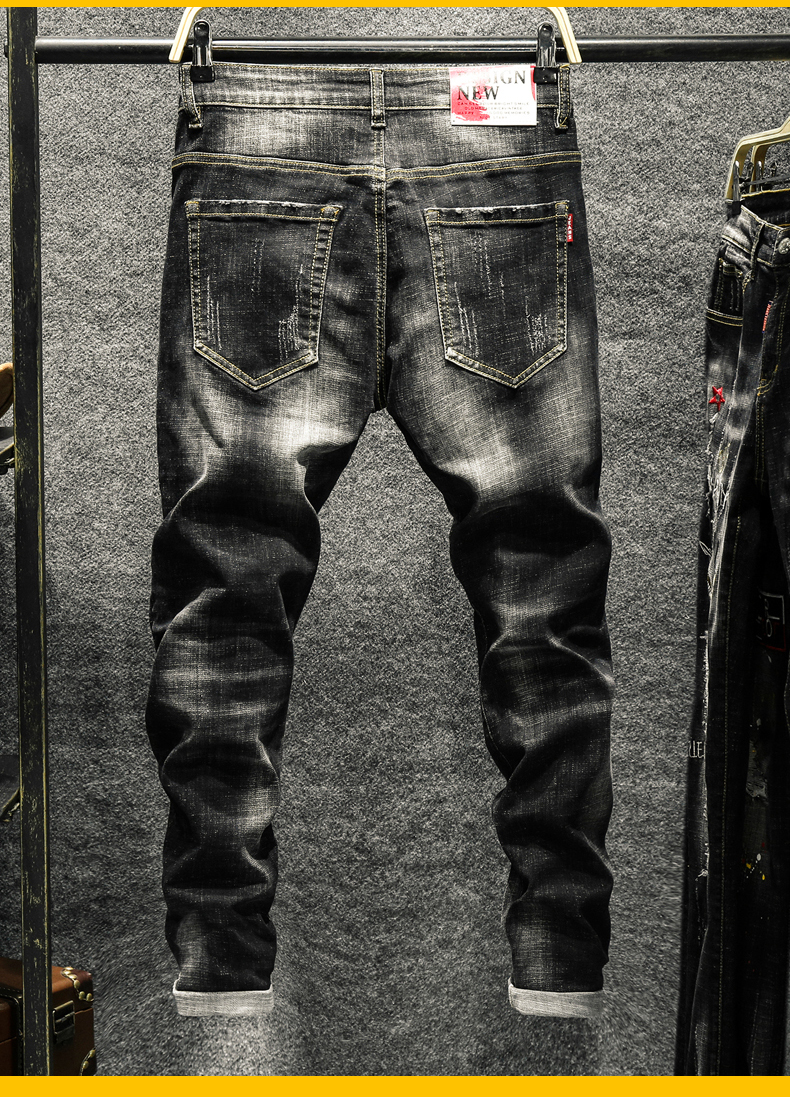 Personality Ripped Jeans Men's Male Korean Style Trendy Fashion Paint Dot Splash Ink Design Slim Print Pants Trousers
