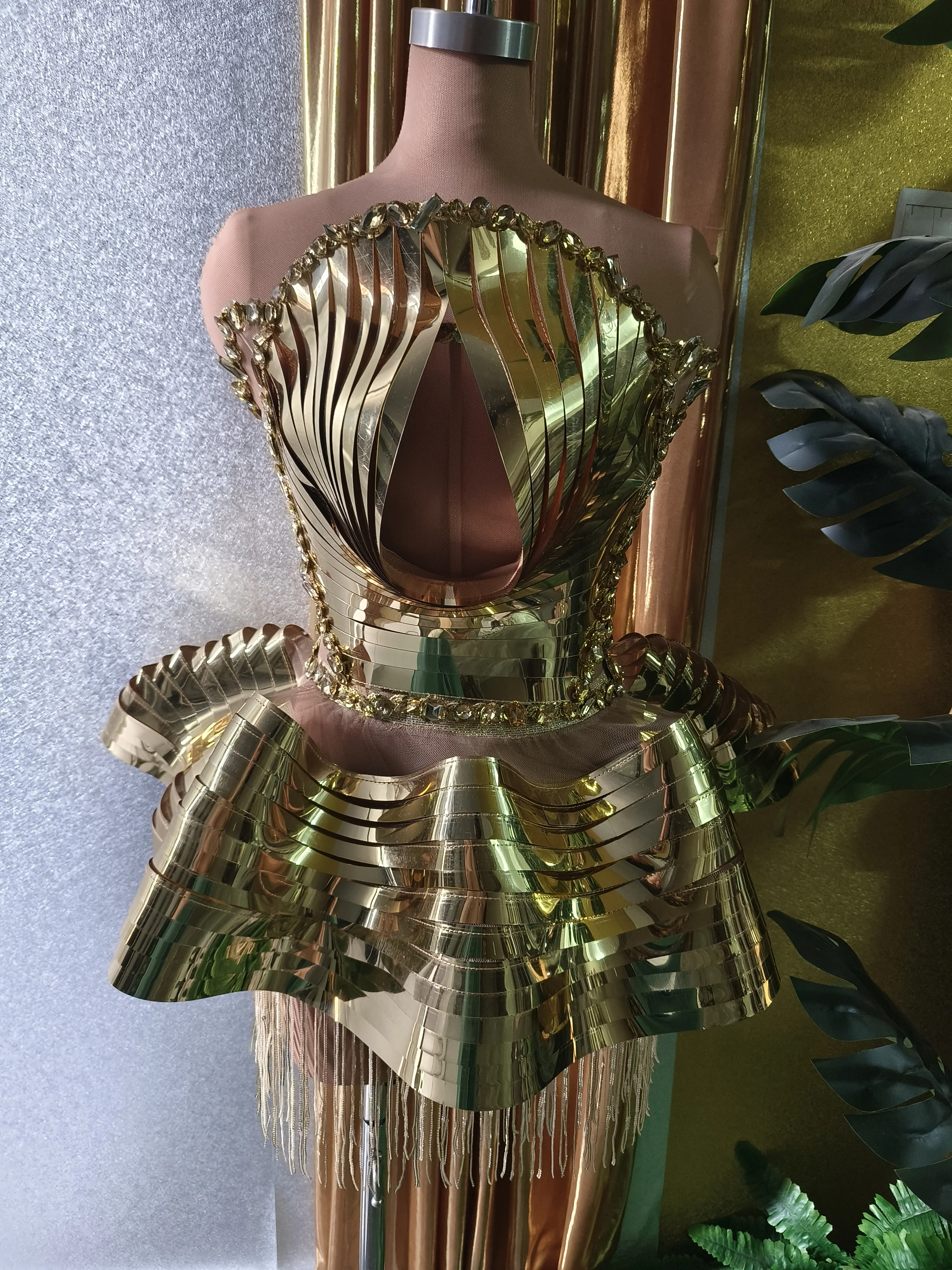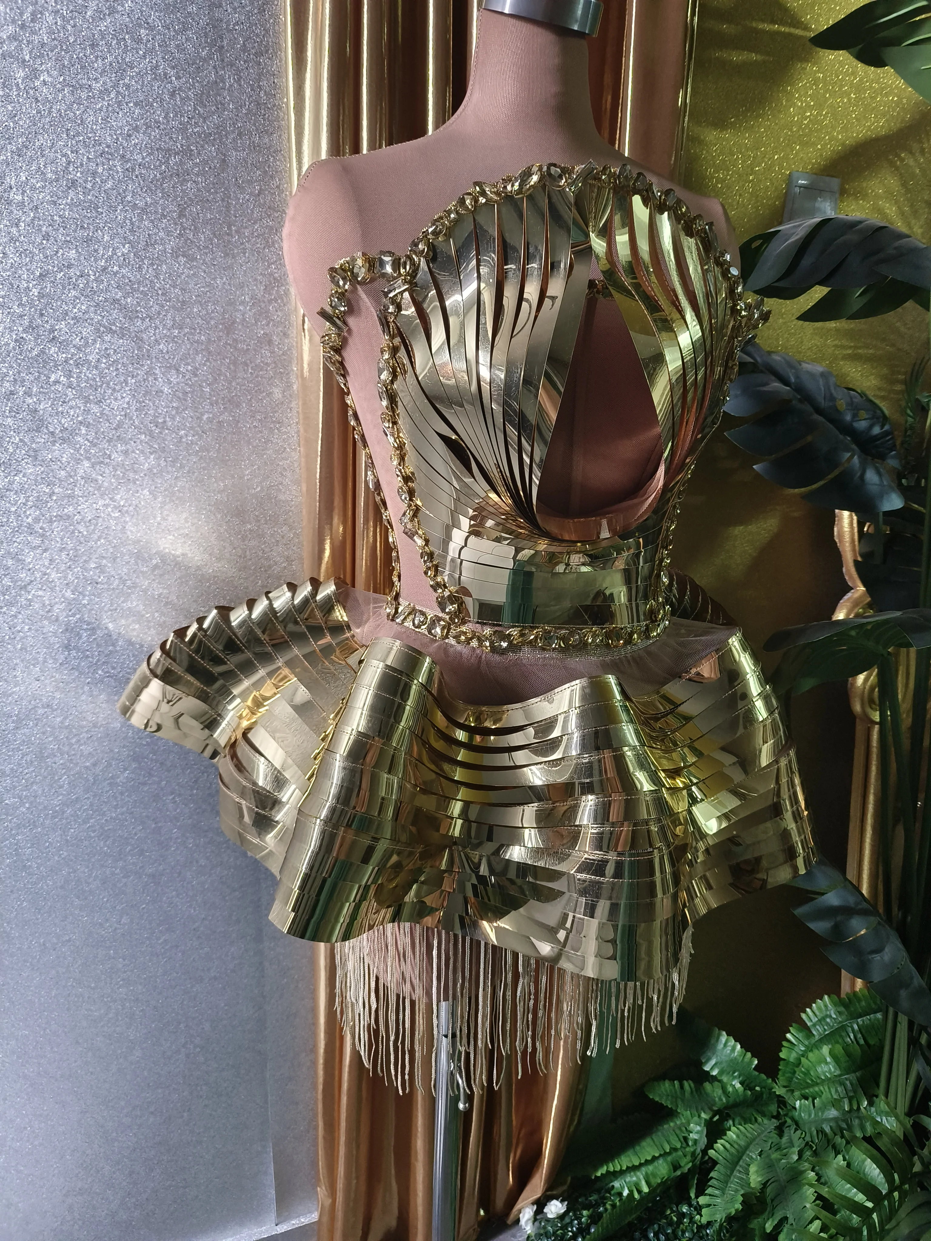 Night Club Bar Female Reflective Mirror Scarabaeidae Tassel Dress Singer Model Show Performance Costume