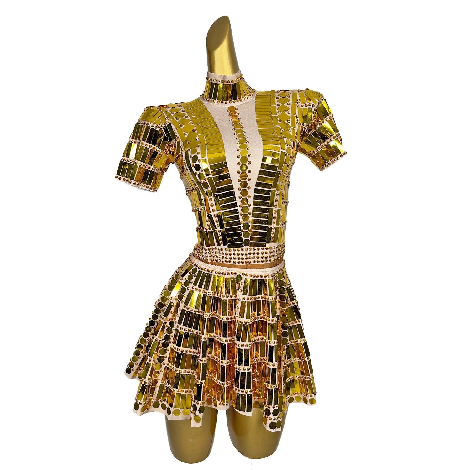 Nightclub Bar Stage Costume Female Song Sexy Leading Dance Dress Sequins Short Dress Performance Outfit Set Lianghuanghuang