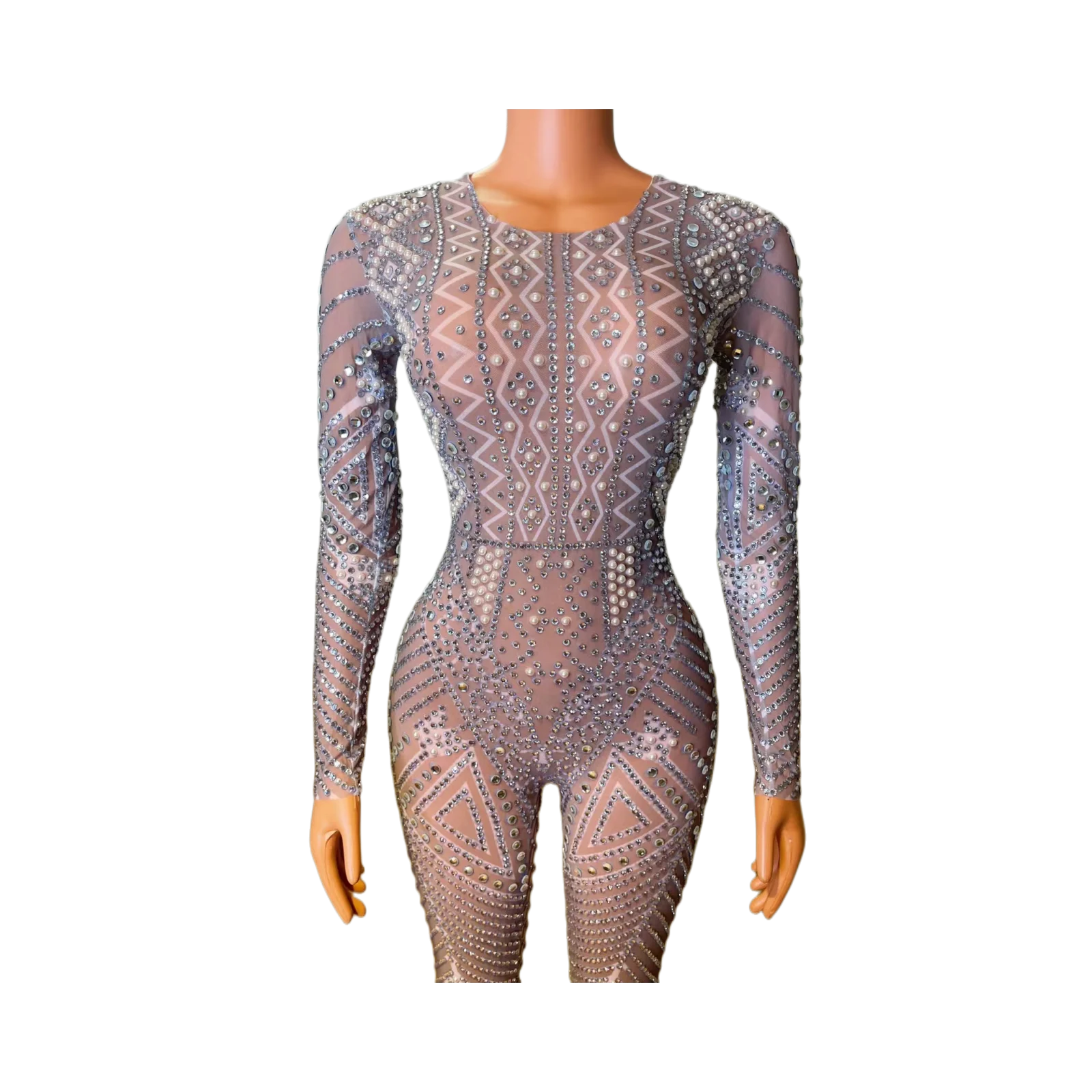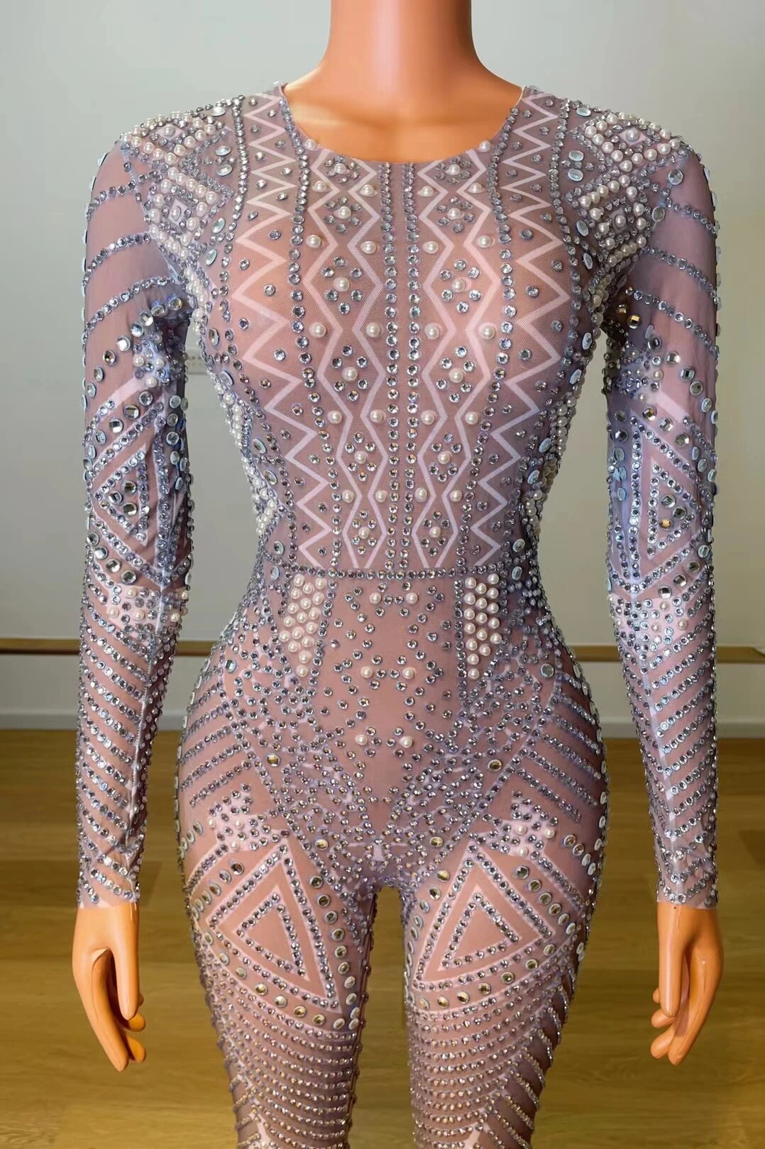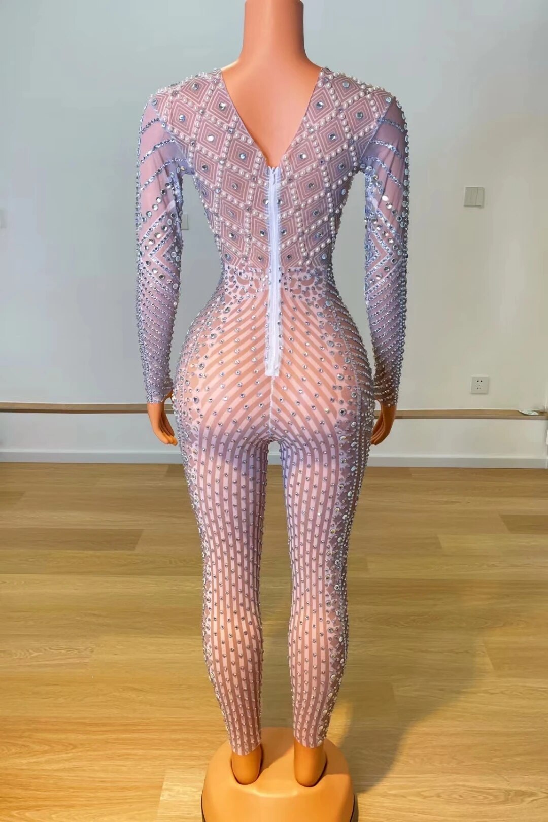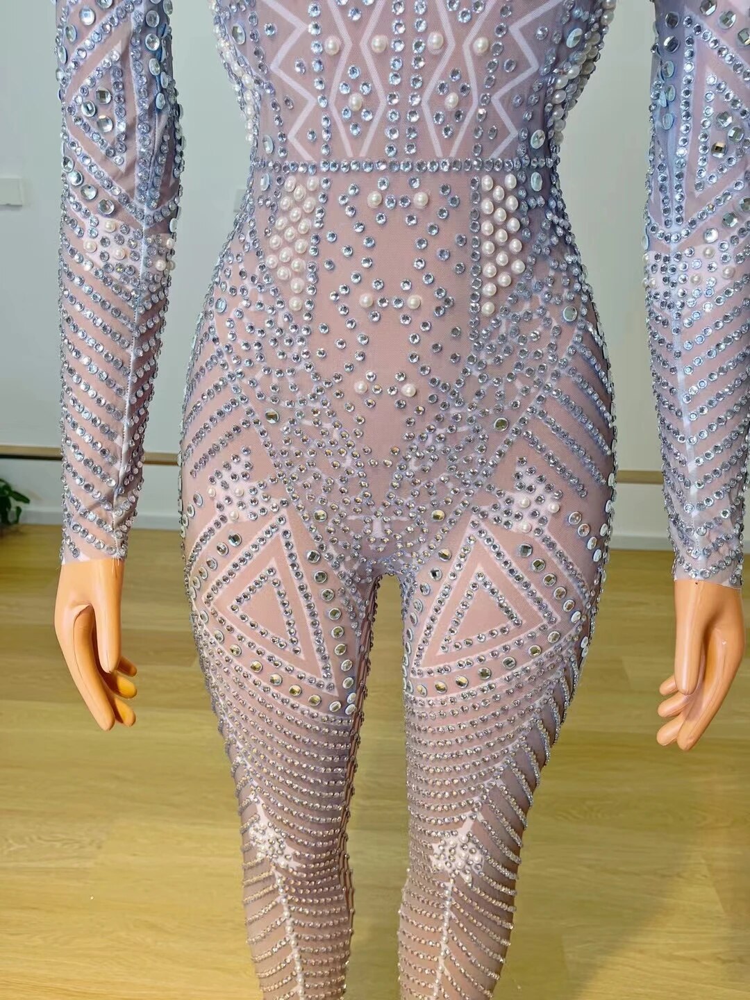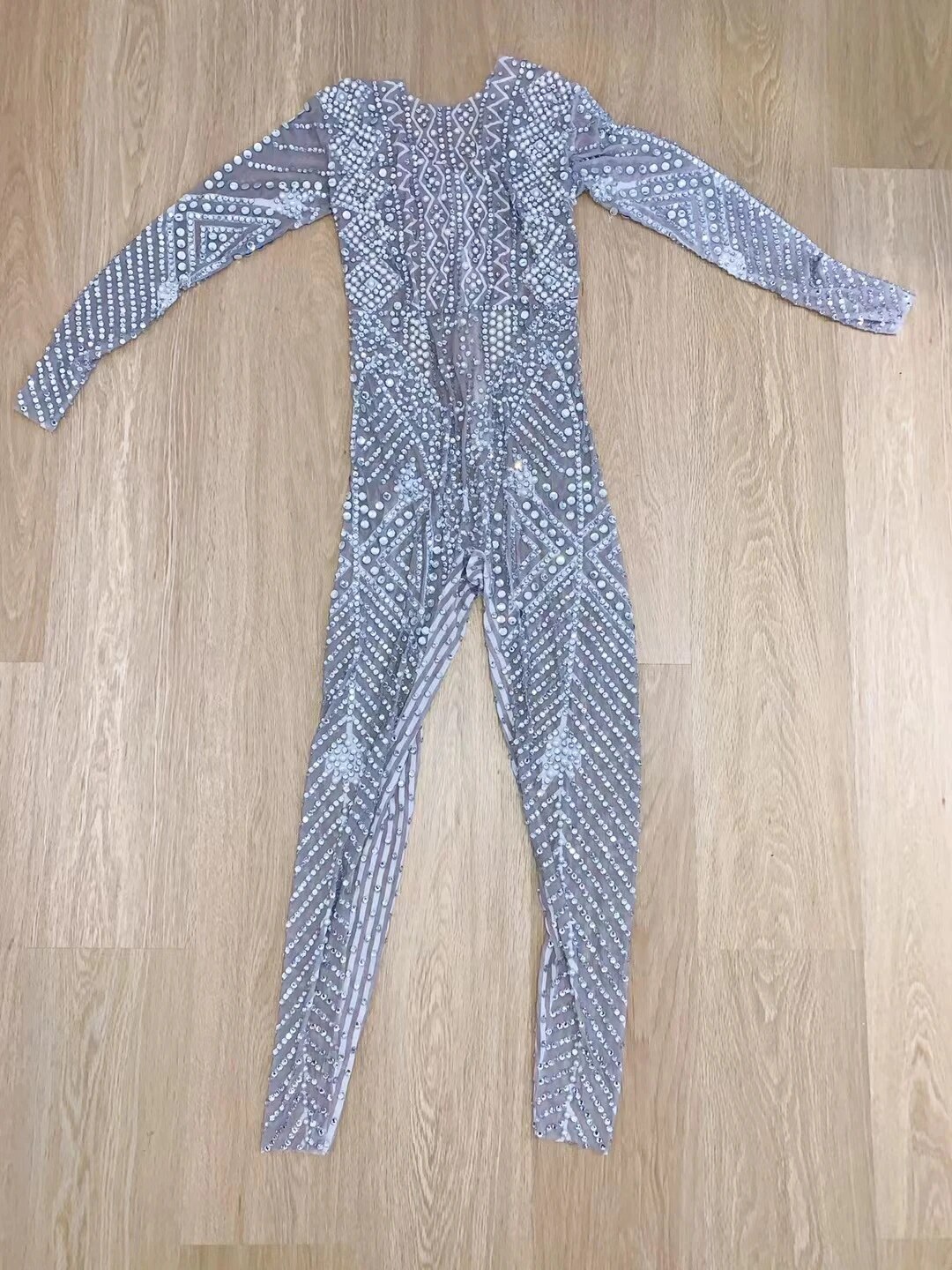 Nightclub Bar Stage European Beauty SingerHigh-end Bright Diamond All-in-One TrousersDJDS Performance Suit Set