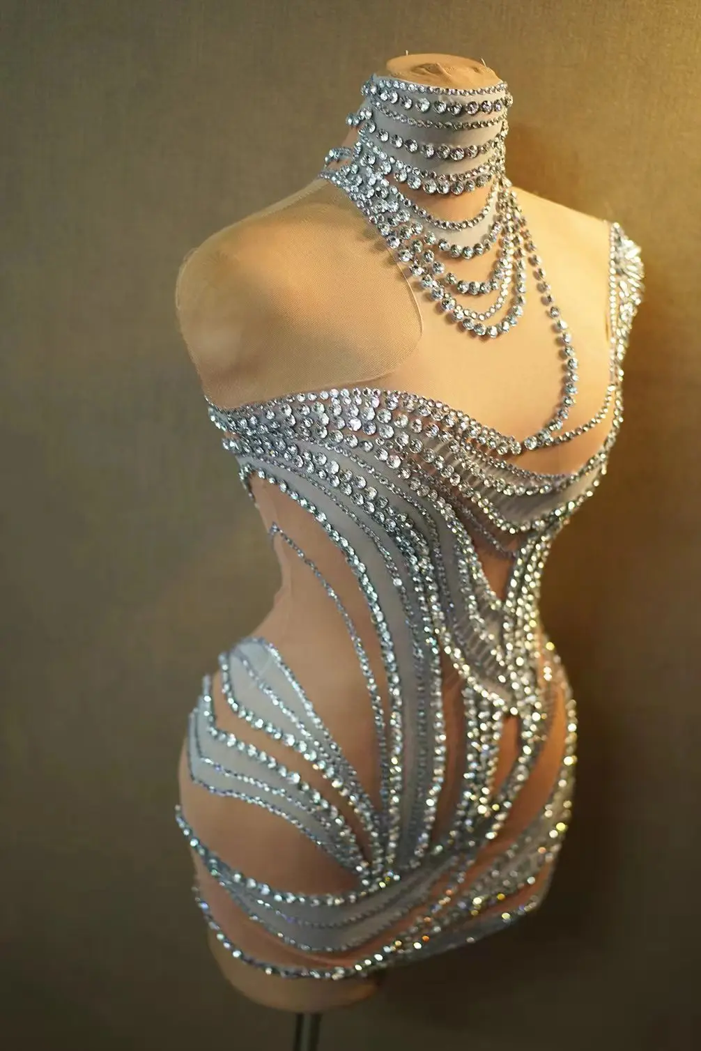 Nightclub Dance Crystals Outfit Singer Performance Stretch Costume Birthday Celebrate Party Sexy Rhinestones Dress Liuzhuan