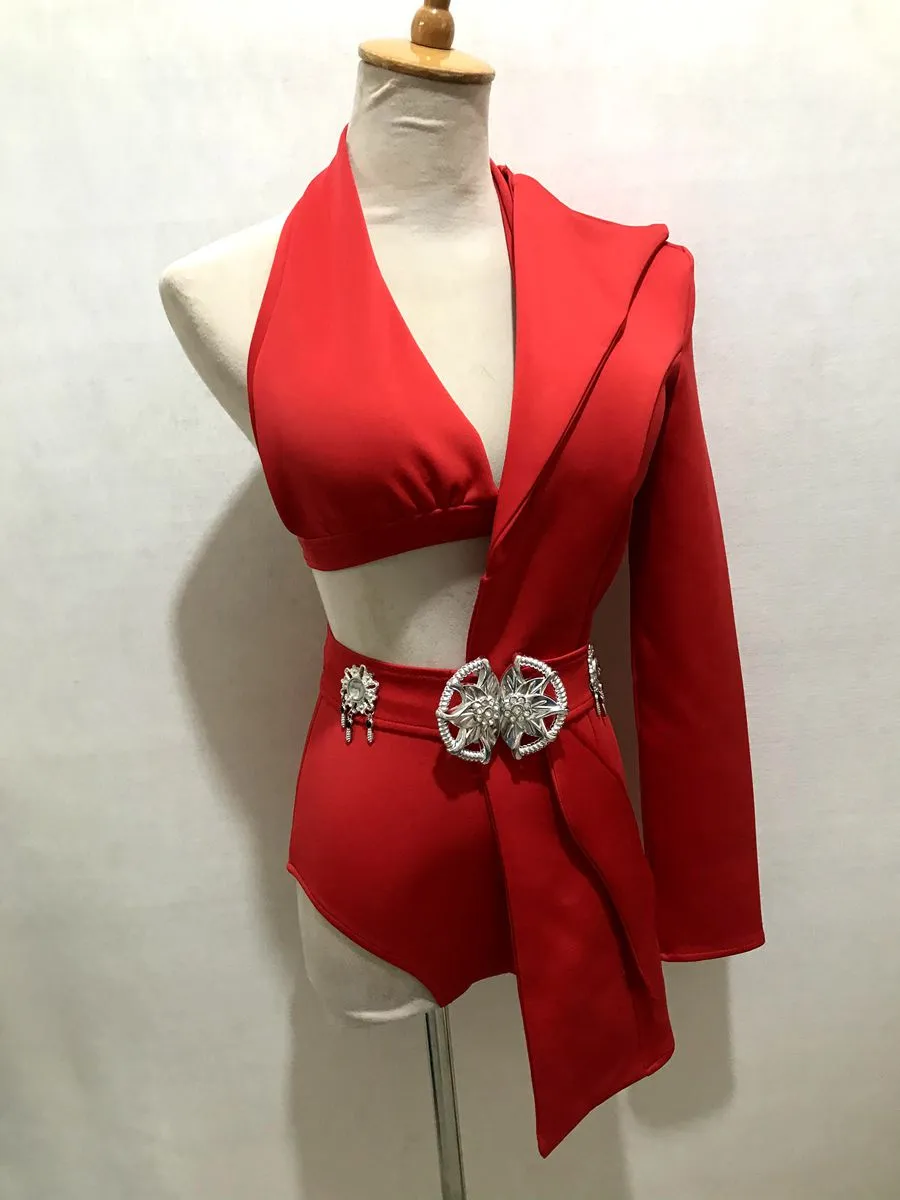 Nightclub Ds Singer Gogo Costume One Sleeve Coat Bikini Women Jazz Dance Clothing Bar Dj Ds Stage Performance Rave Outfit