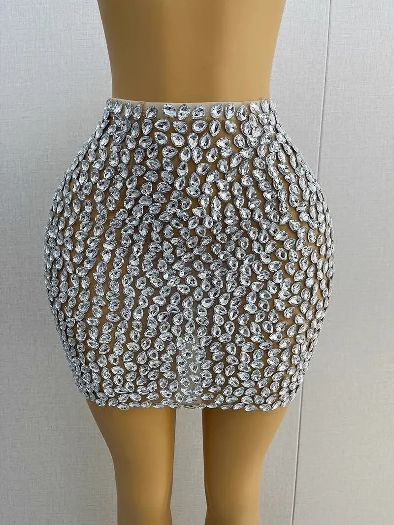 Nightclub Singer Dancer Stage Wear Luxury Rhinestones Sexy See Through Sheath Skirt Evening Party Performance Costume