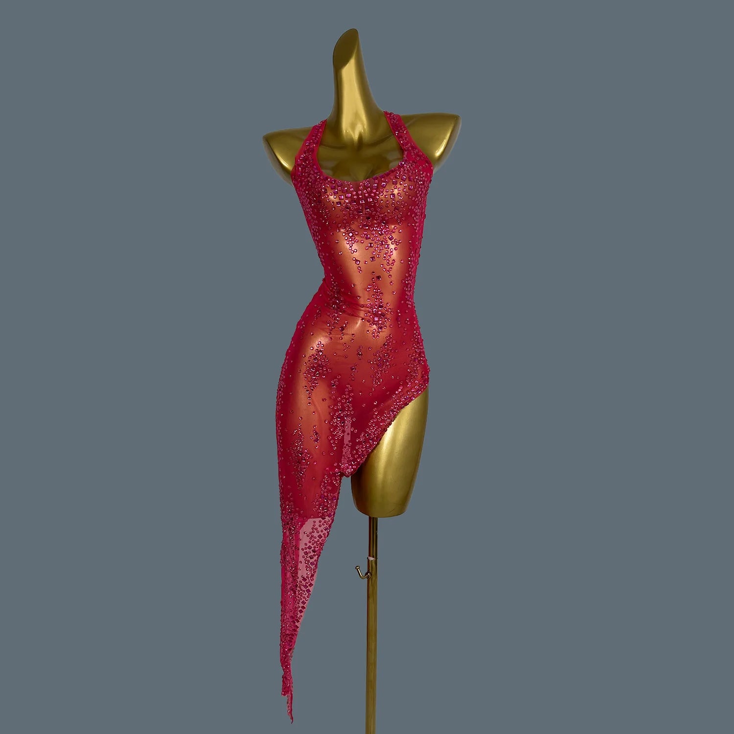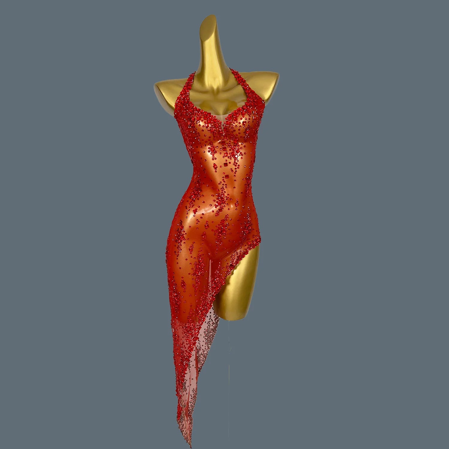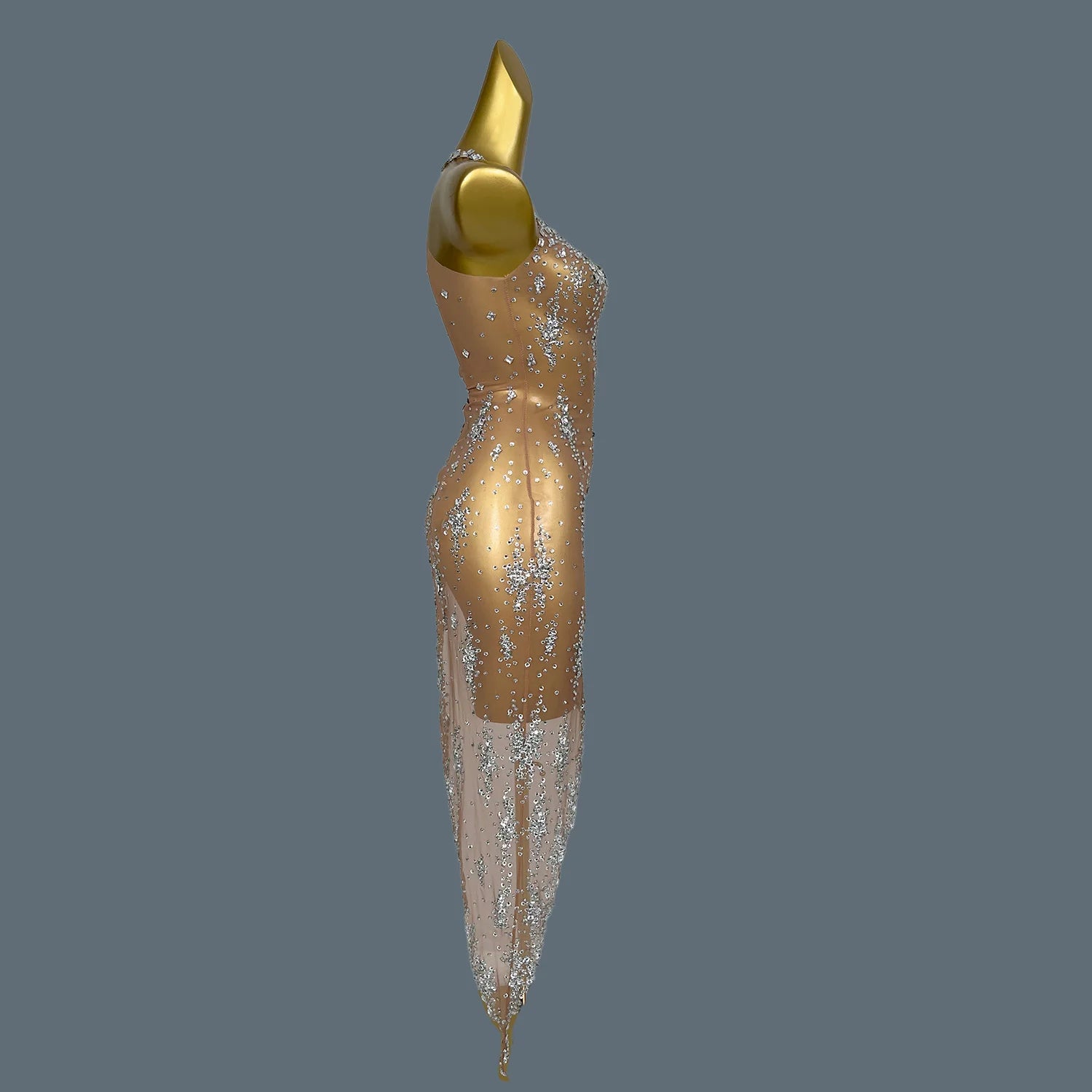 Elevate your stage presence with this stunning nightclub singer costume, perfect for parties and birthday celebrations. This eye-catching outfit features a sleeveless, asymmetric design adorned with sparkling rhinestones that catch the light beautifully. Whether you're performing or dancing the night away, this glamorous dress will ensure you stand out in style.