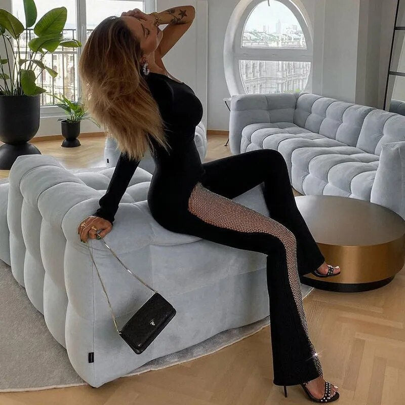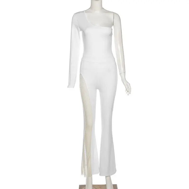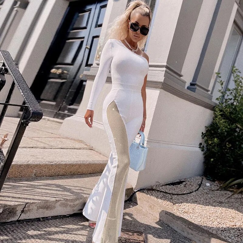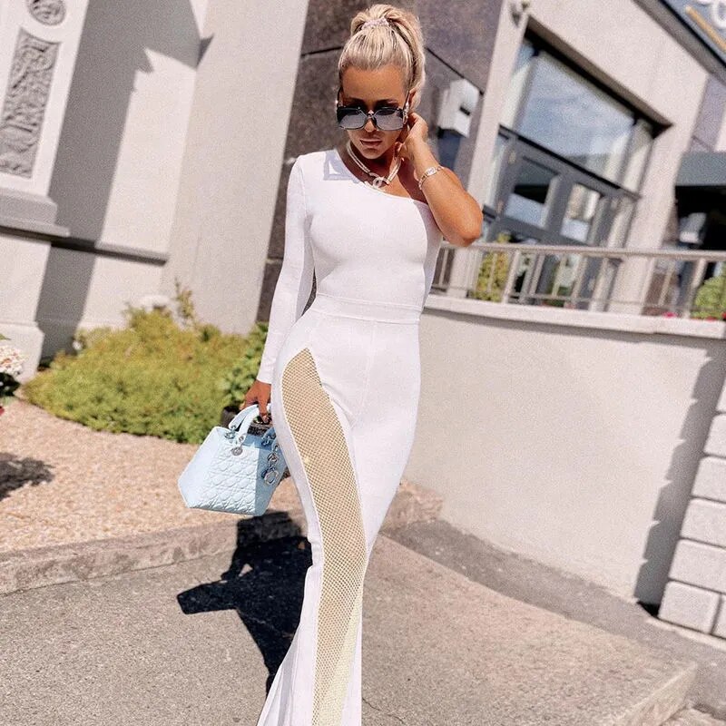 One Shoulder Jumpsuit Prom Dress High Waist Full Sleeves Autumn Spring Stitching Tulle Wide Leg Party Evening Dress Long Vestido