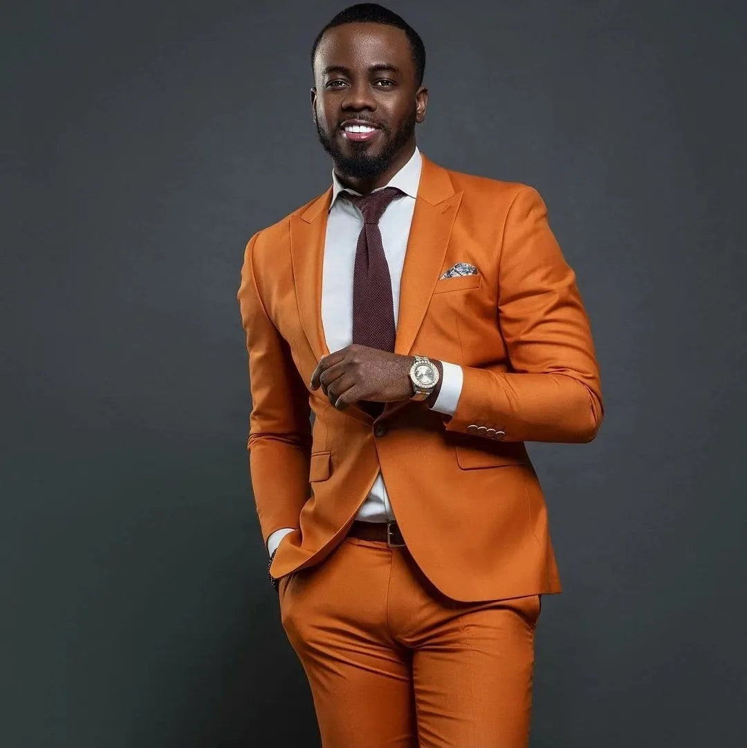 Orange Costume Homme Peak Lapel One Button Men Suits Wedding Slim Fit Groom Tuxedo Terno Masculino Prom Blazer 2 Pc Jacket Pant