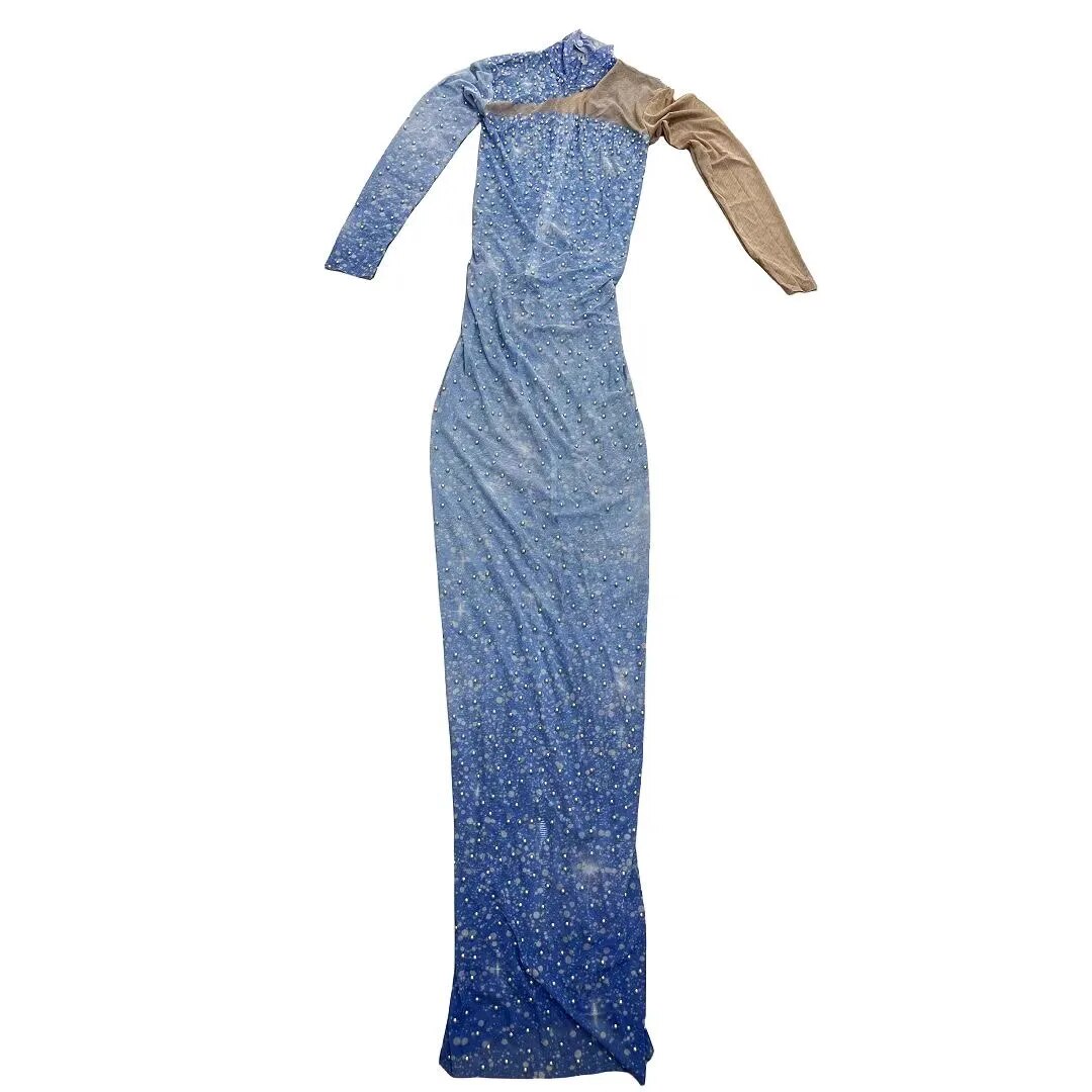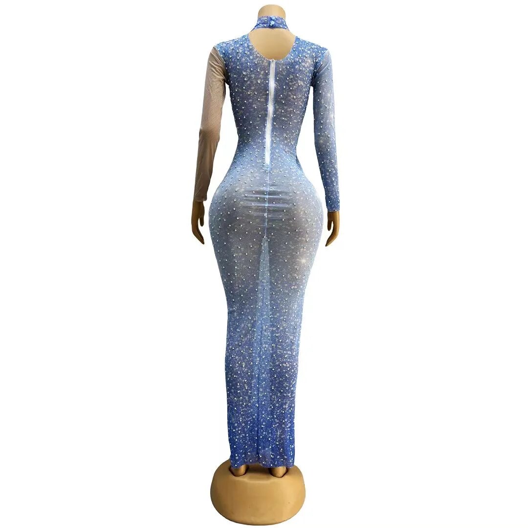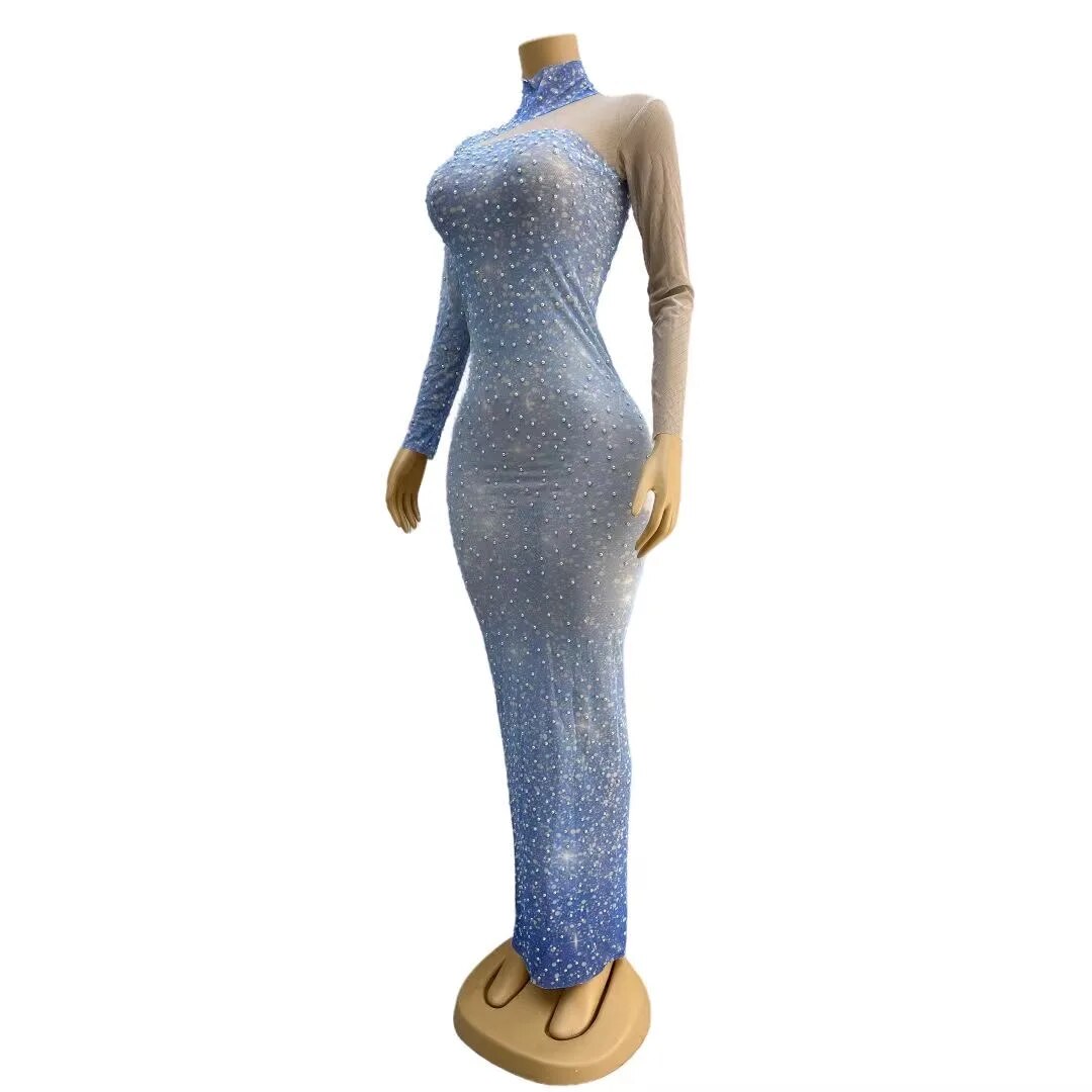 Pearls Sky Blue Transparent Long SleevesCelebrate Dress Birthday Sexy Outfit Prom PartyWearlantian