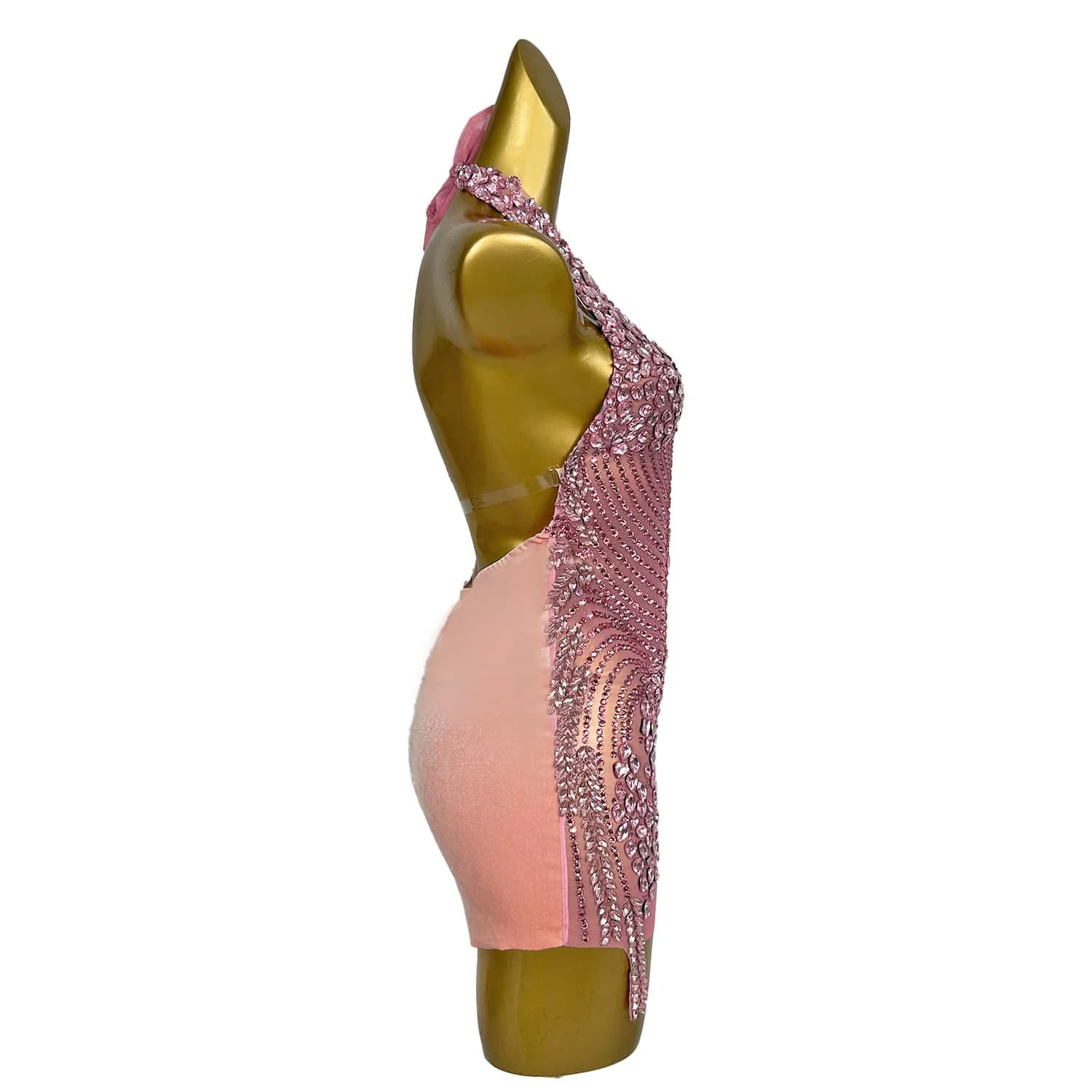 Pink Beaded Short Prom Dress for Black Girls Crystal Rhinestones Birthday Party Dress Mini Cocktail Party Dress Plus Size Meifen