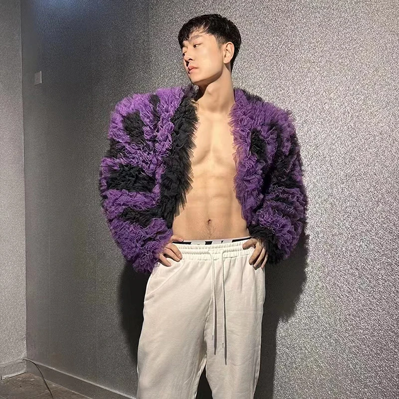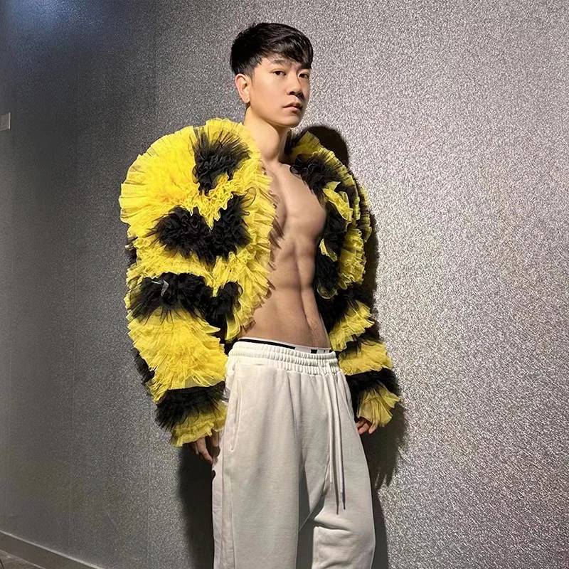 Pleated Mesh Coat Singer Dancer Performance Stage Costume Gogo Dance Wear Drag Queen Clothes Nightclub Bar Dj Clubwear
