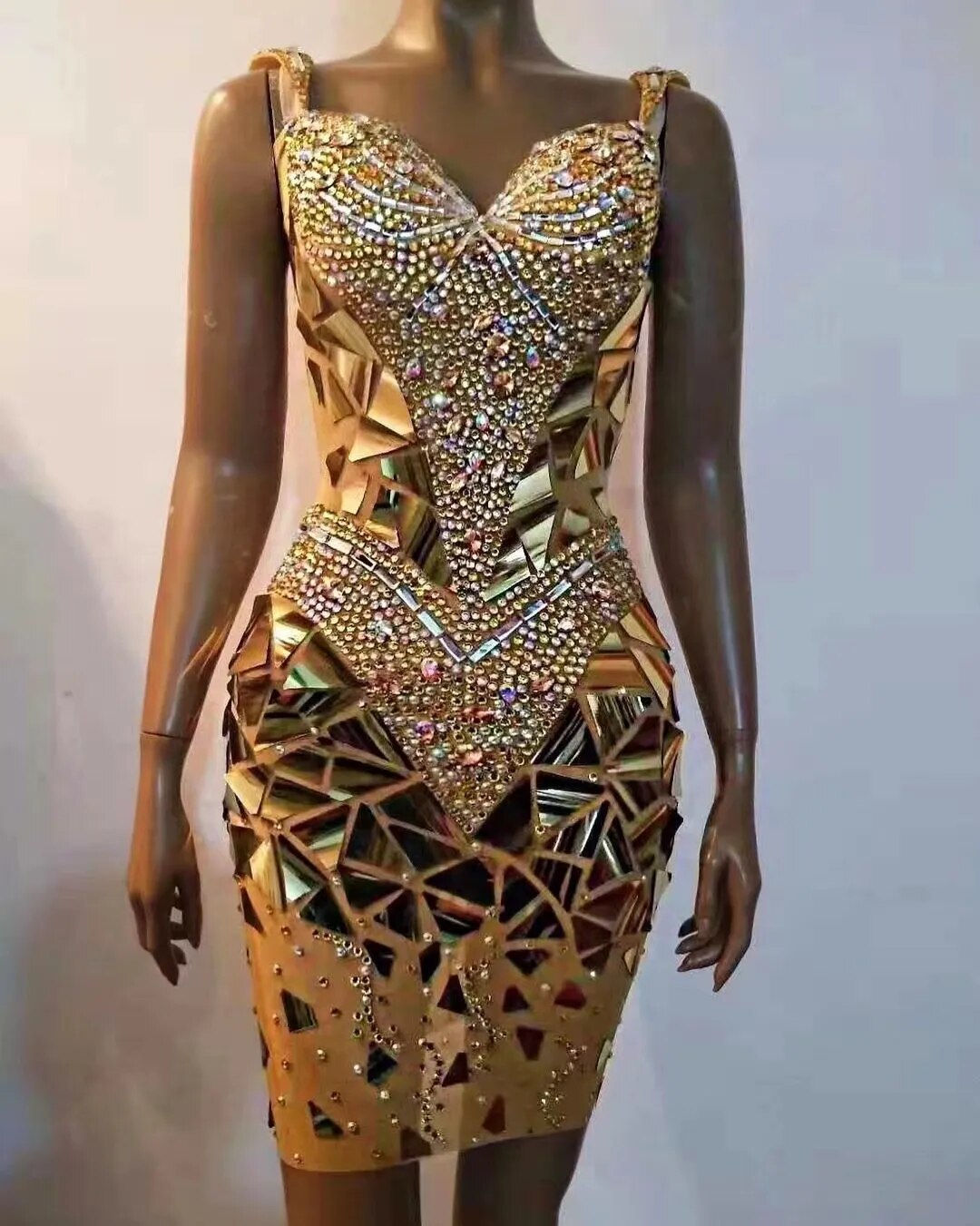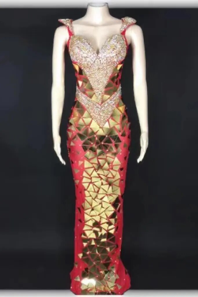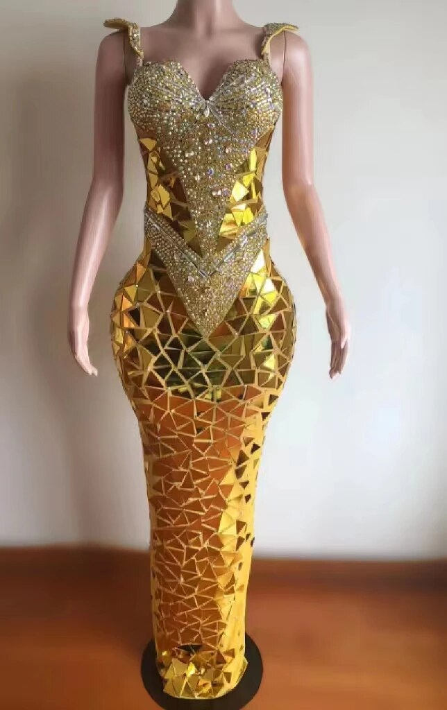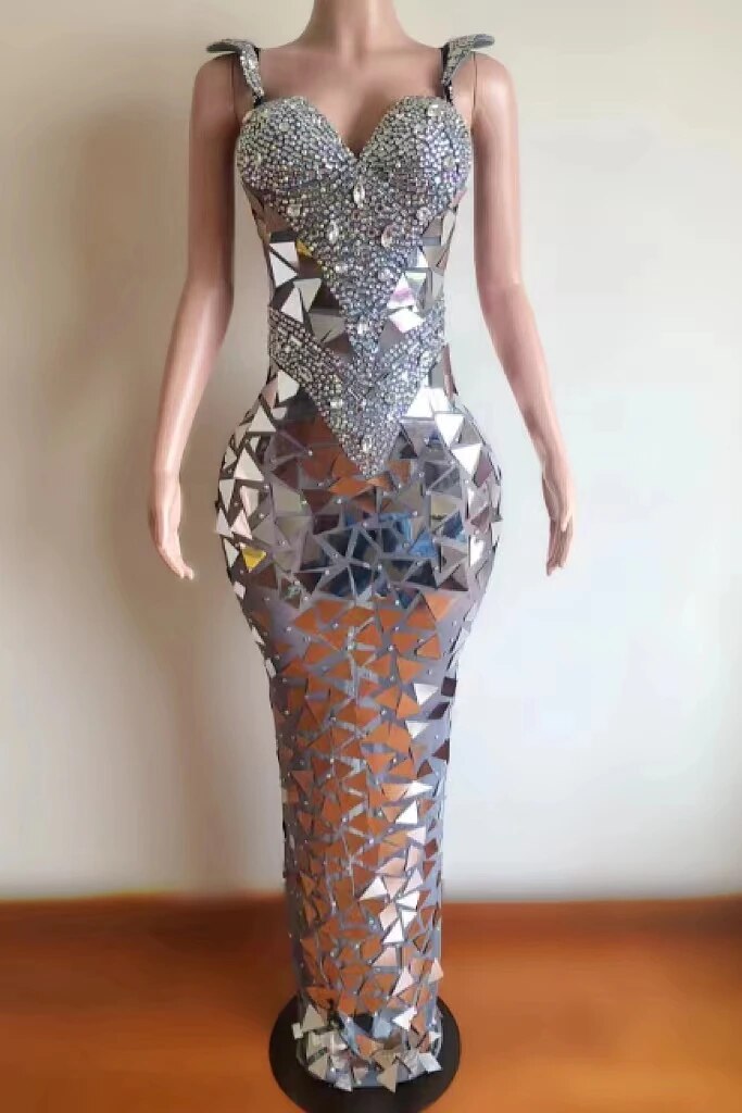Full Diamond Lens Mesh Slim Fit Sexy ElasticWrap Hip Deep V Singer Model Nightclub BarPerf