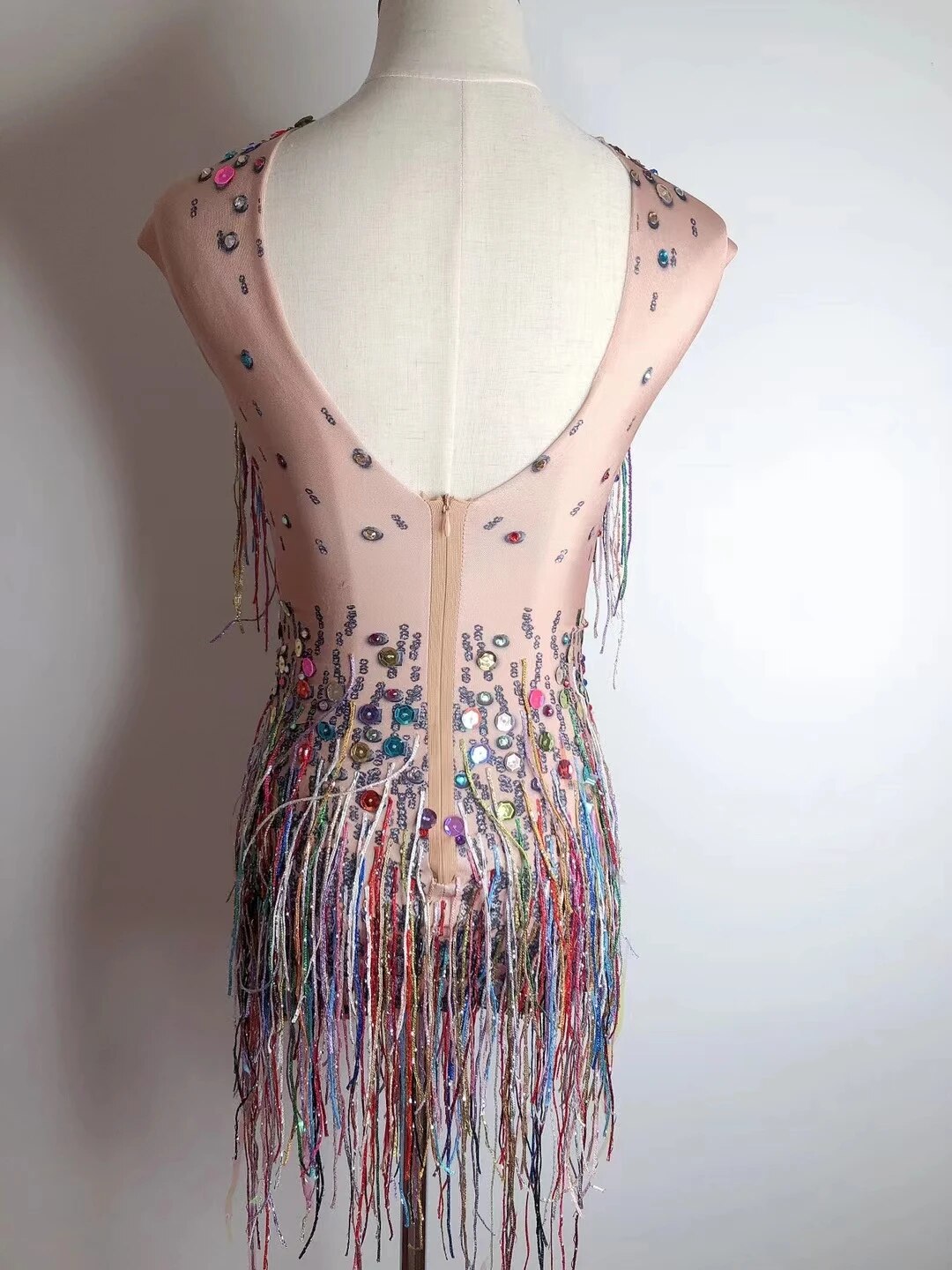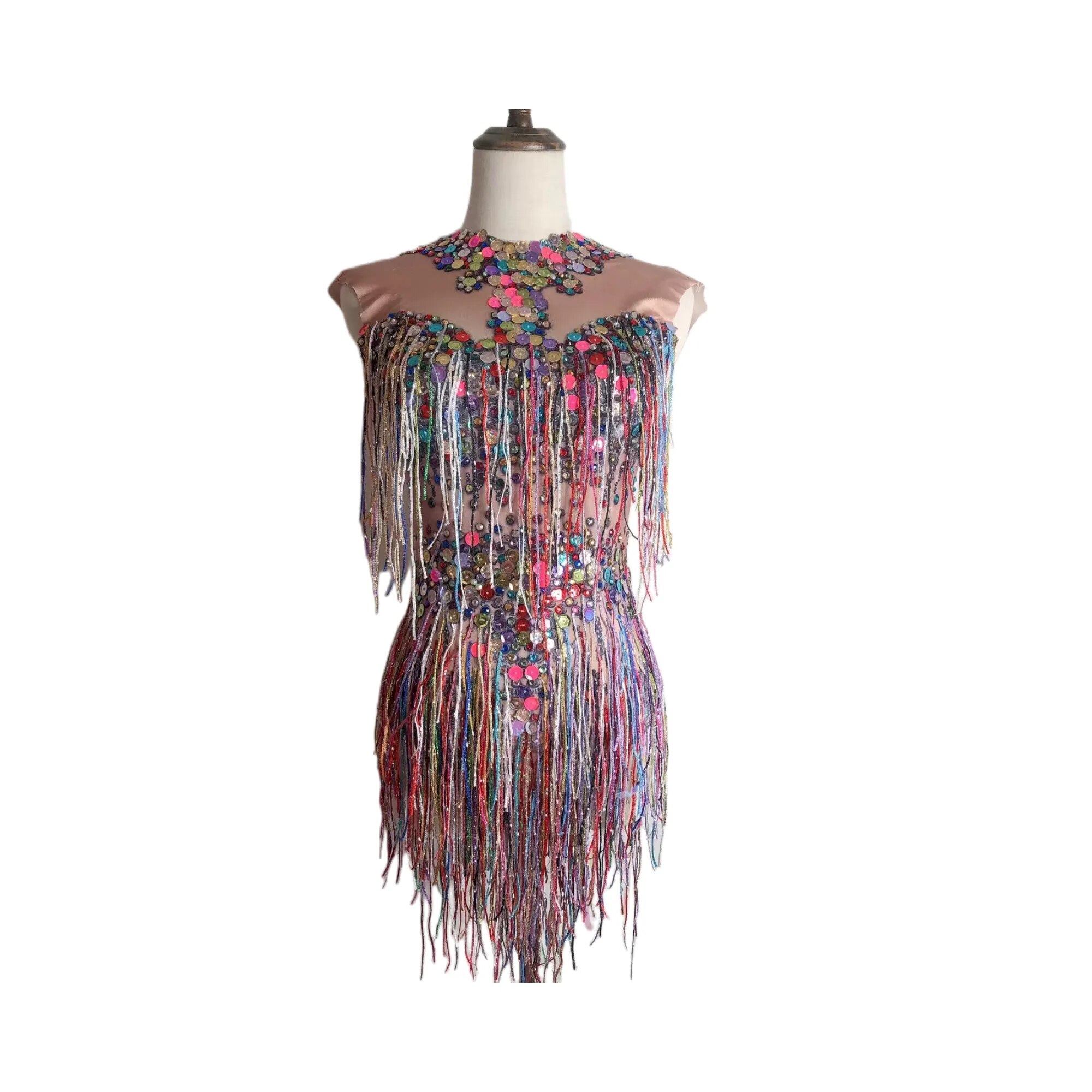Rhinestones Tassel Nightclub Bodysuit WomerStretch Sexy Leotard Celebration PerformanceDan