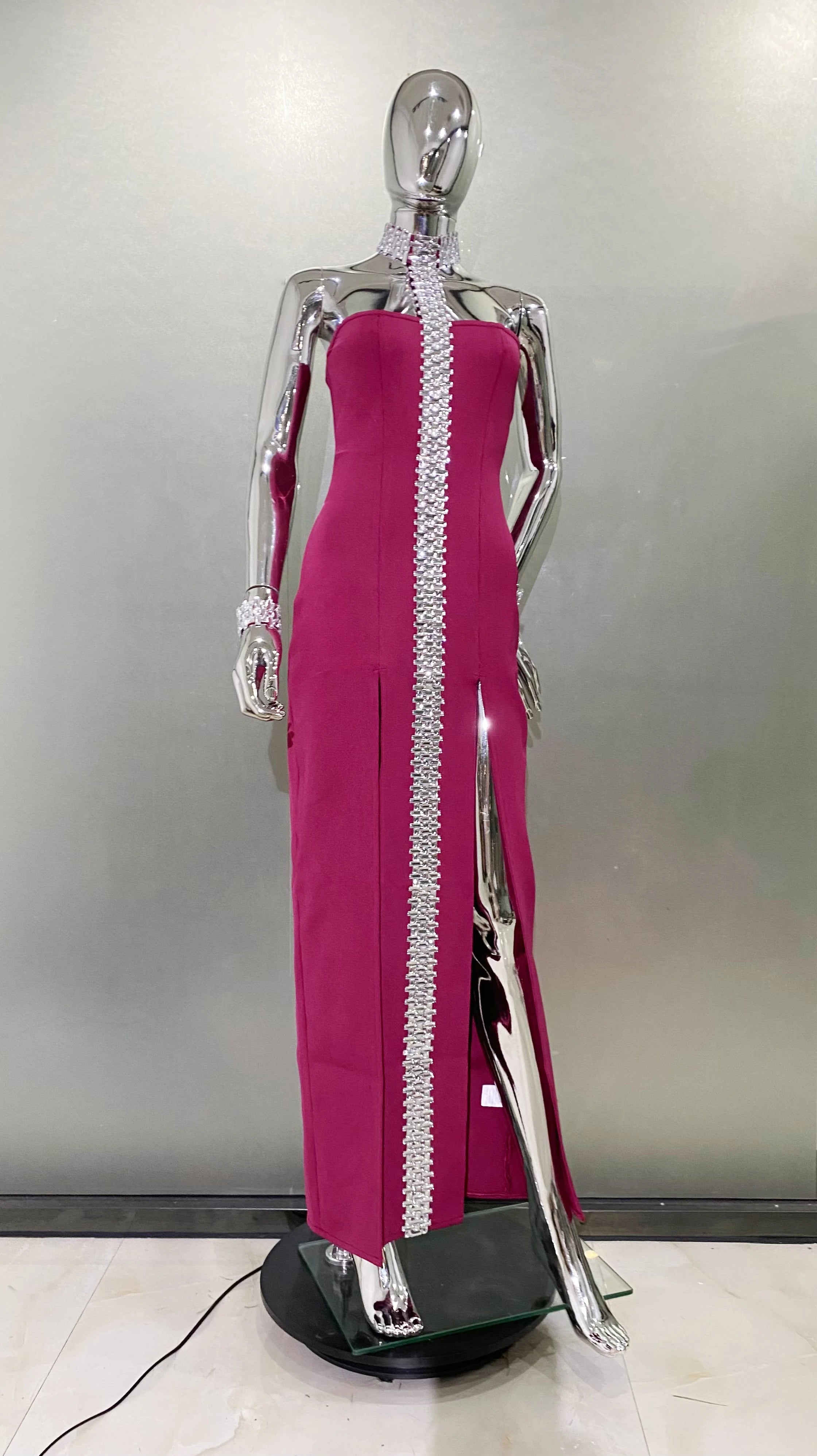 Purple Black Sparkly Crystal Women Sexy Off The Shoulder Halter Bodycon Long Bandage Dress Elegant Evening Party Prom Dress