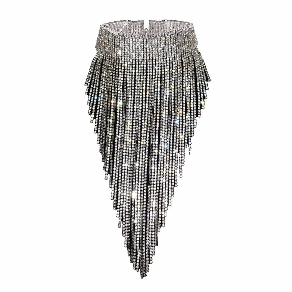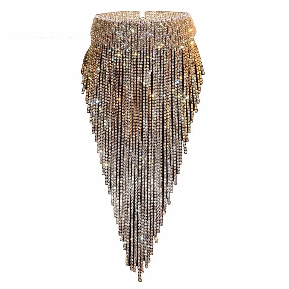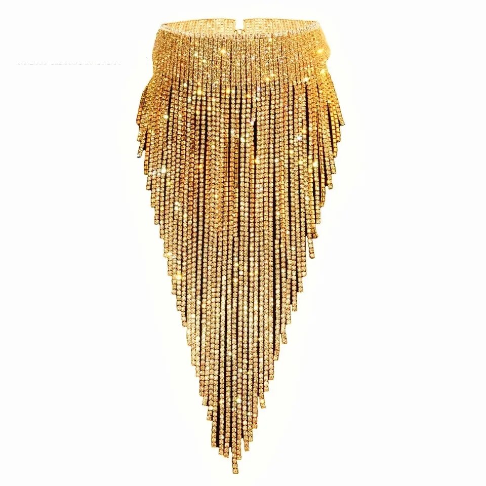 Qiaose Shiny Ful Rhinestone Long Chain Chokercollar Statement Necklace for Women Stunning Necklace Jewelry