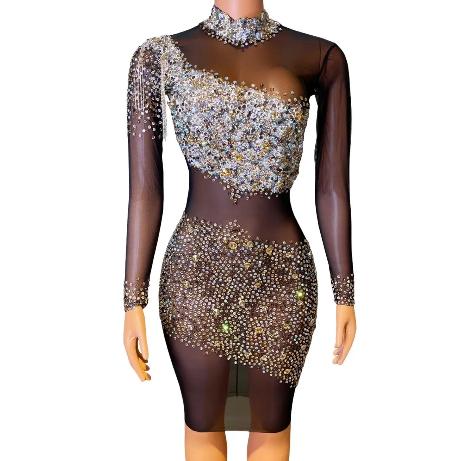 Real Picture Sexy Girls Sparkly Crystals Mini Dresses Black Girls Mini Short Prom Dresses 2024 for Birthday Party Zhuanquan