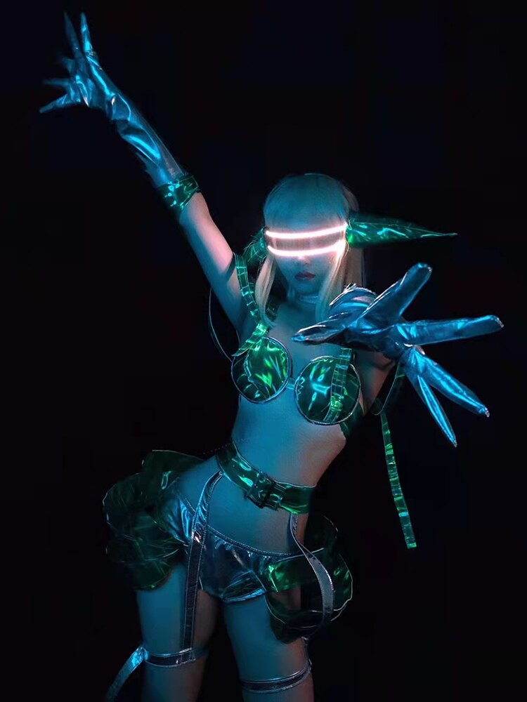 Reflective Rave Hi Tech Psychedelic Show Dj Lady Gaga Show Music Festival Singer Luminous Laser Leather Design Coat
